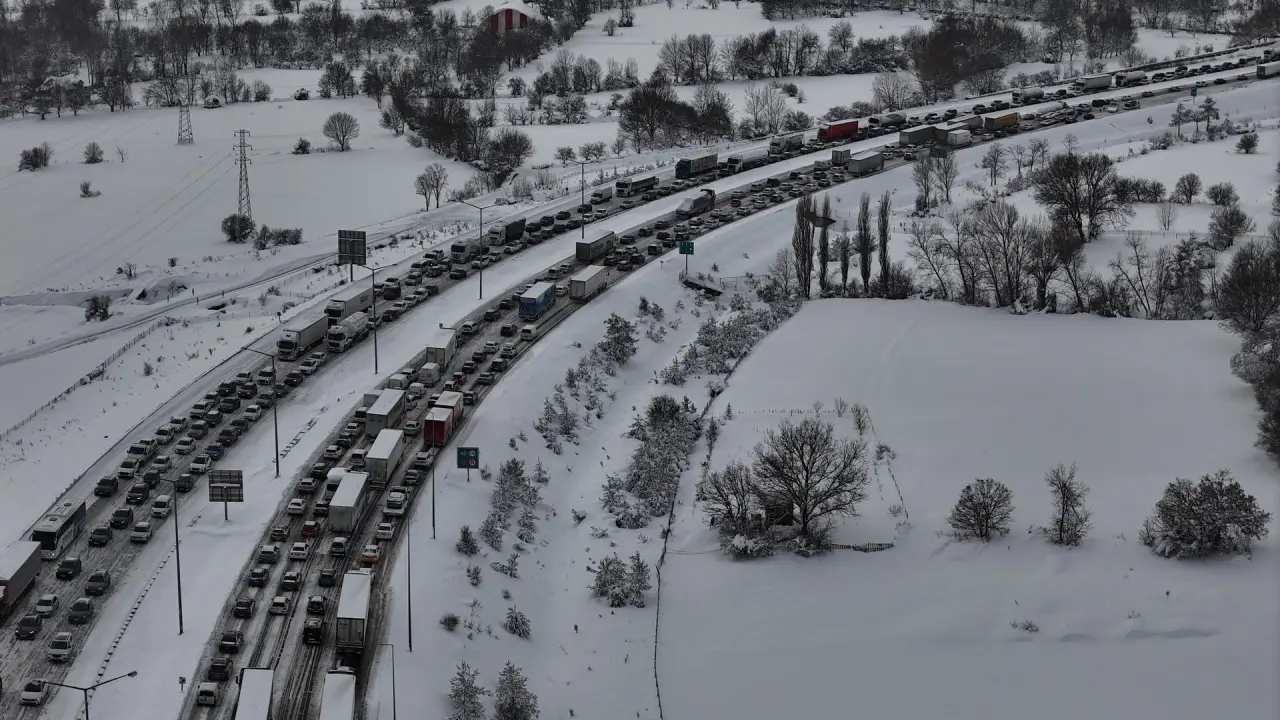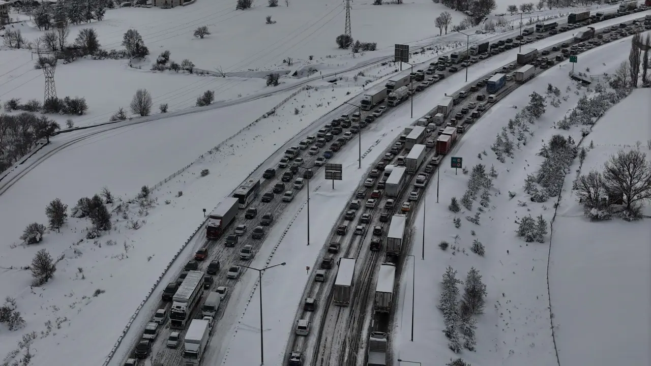 TEM Otoyolu'nun Bolu geçişinde yoğun kar yağışı ve kayan tırlar nedeniyle trafik tamamen durdu. Ankara ve İstanbul yönündeki yol kesintisiz araç kuyruklarıyla kapandı.