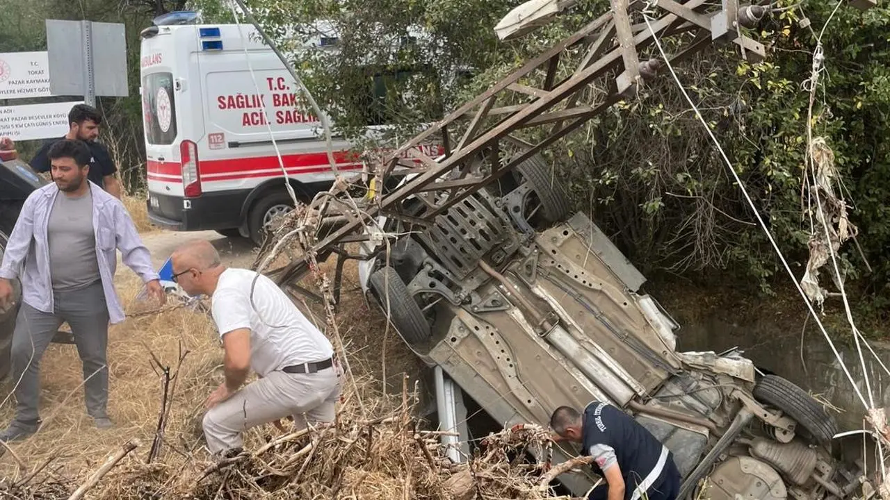 Tokat'ın Pazar ilçesinde meydana gelen trafik kazasında kadın sürücü hayatını kaybederken, elektrik direğindeki leylekler telef oldu.