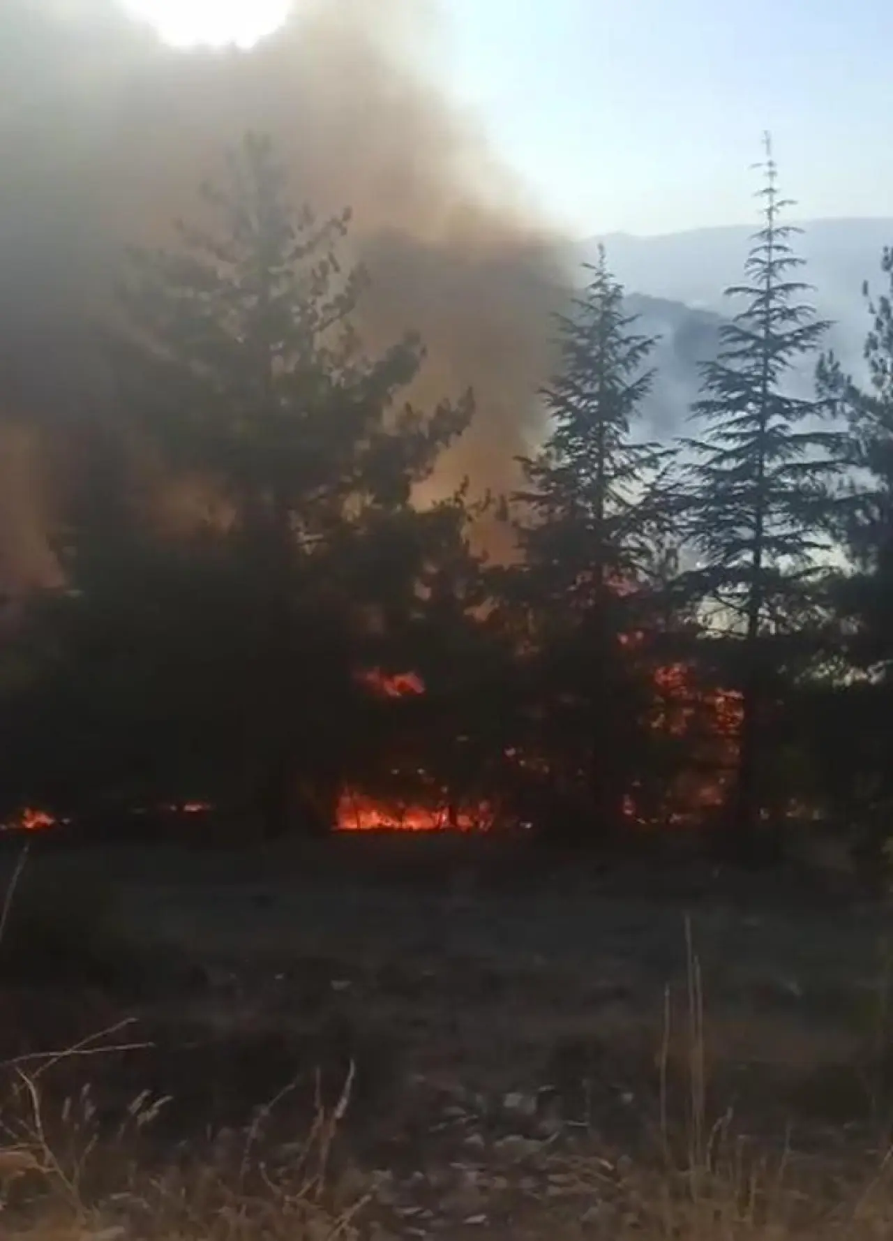 İtfaiye ekipleri ve Orman İşletme Müdürlüğü ekipleri, yangının yerleşim yerlerine ulaşmaması için mücadele ediyor.