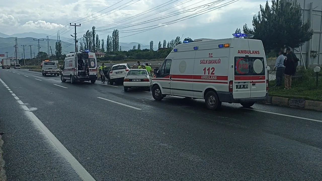 Tosya ilçesi Yazıçam mevkiinde seyir halindeki iki otomobil kavşakta çarpıştı. A.O. yönetimindeki araç, dinlenme tesisine dönüş yapan B.G.'nin aracına çarptı.