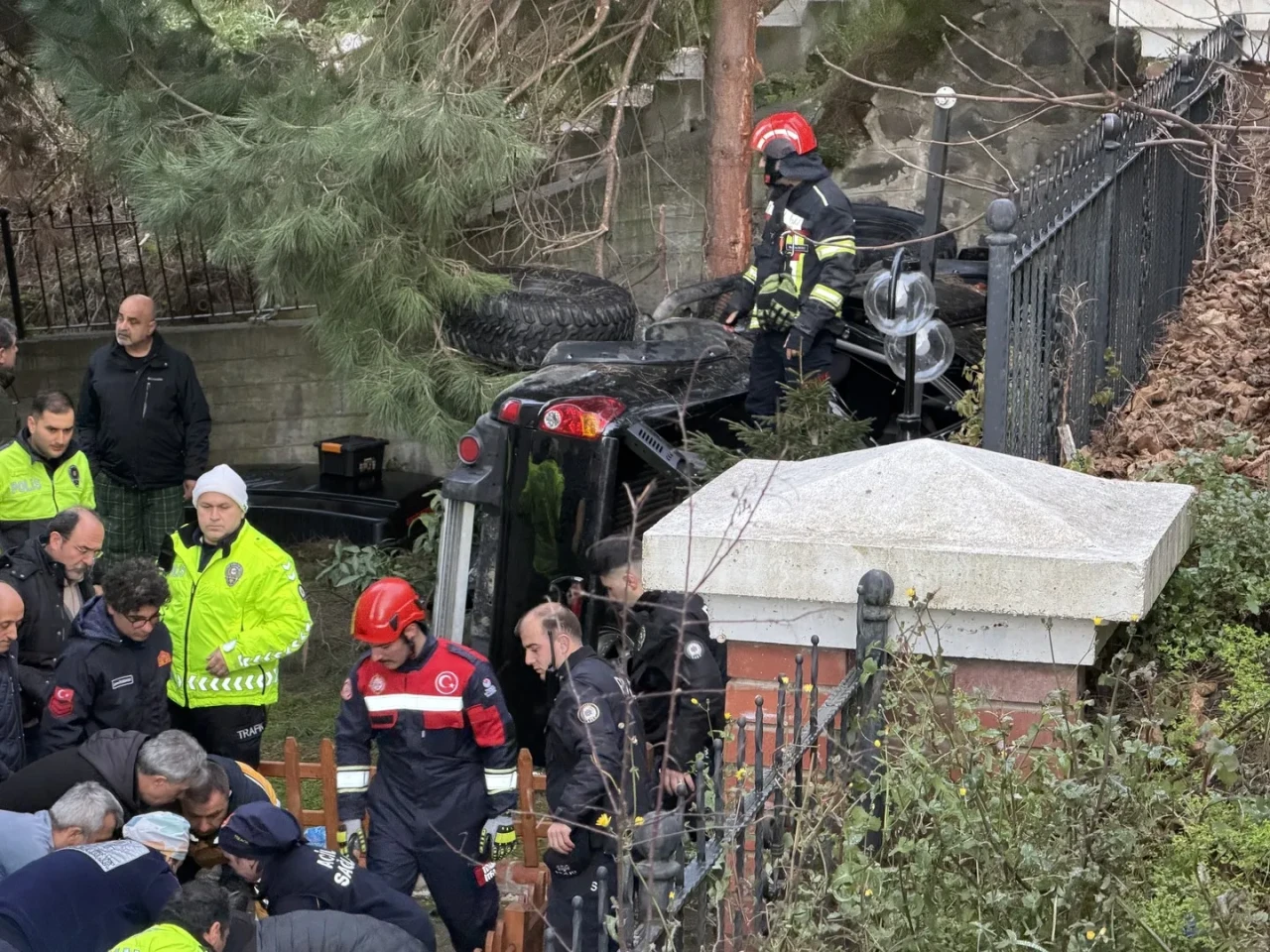 Kamyonet, Avrupa Evleri Sitesi'nin bahçesine devrildi. Çevredekilerin yardımıyla olay yerine ekipler sevk edildi.