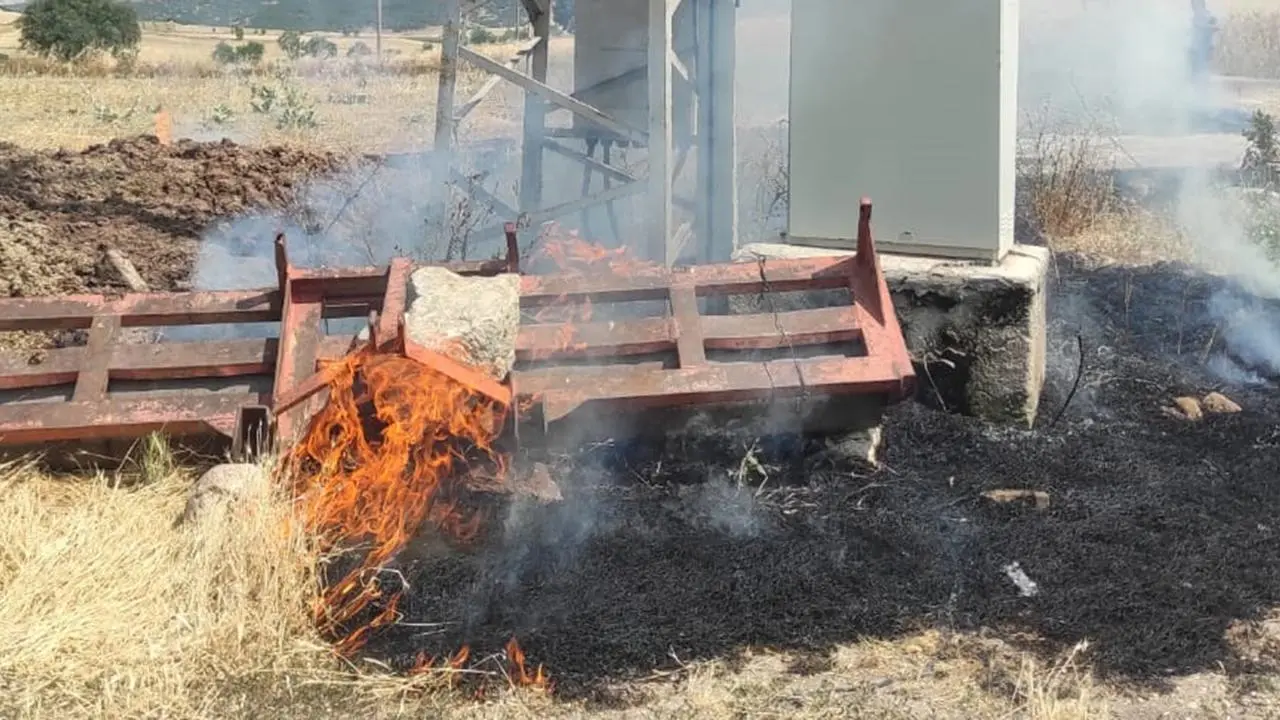 Pabuçlu Mahallesi'nde elektrik tellerine çarpan kuş, kıvılcımlara neden oldu. Kuru otların tutuşmasıyla başlayan yangın, rüzgarın etkisiyle hızla yayıldı.