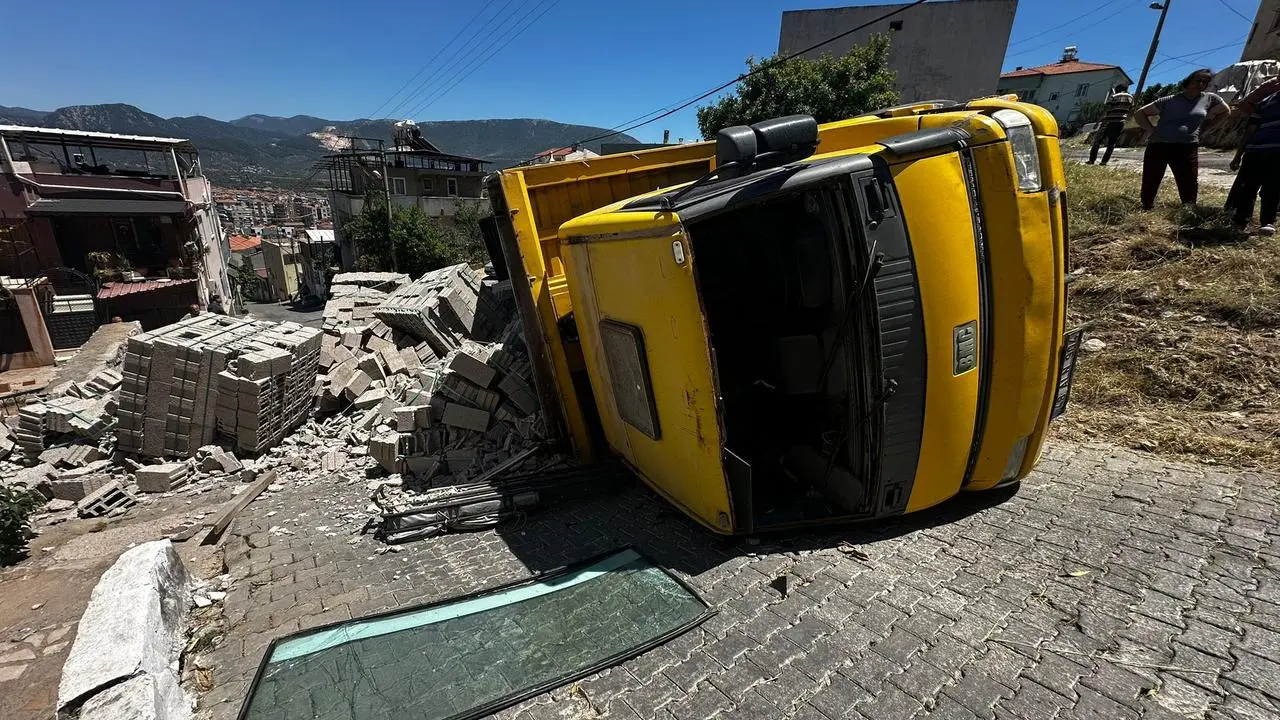 Muğla'nın Milas ilçesinde tuğla yüklü kamyonun kontrolden çıkarak devrilmesi sonucu bir kişi hastaneye kaldırıldı.