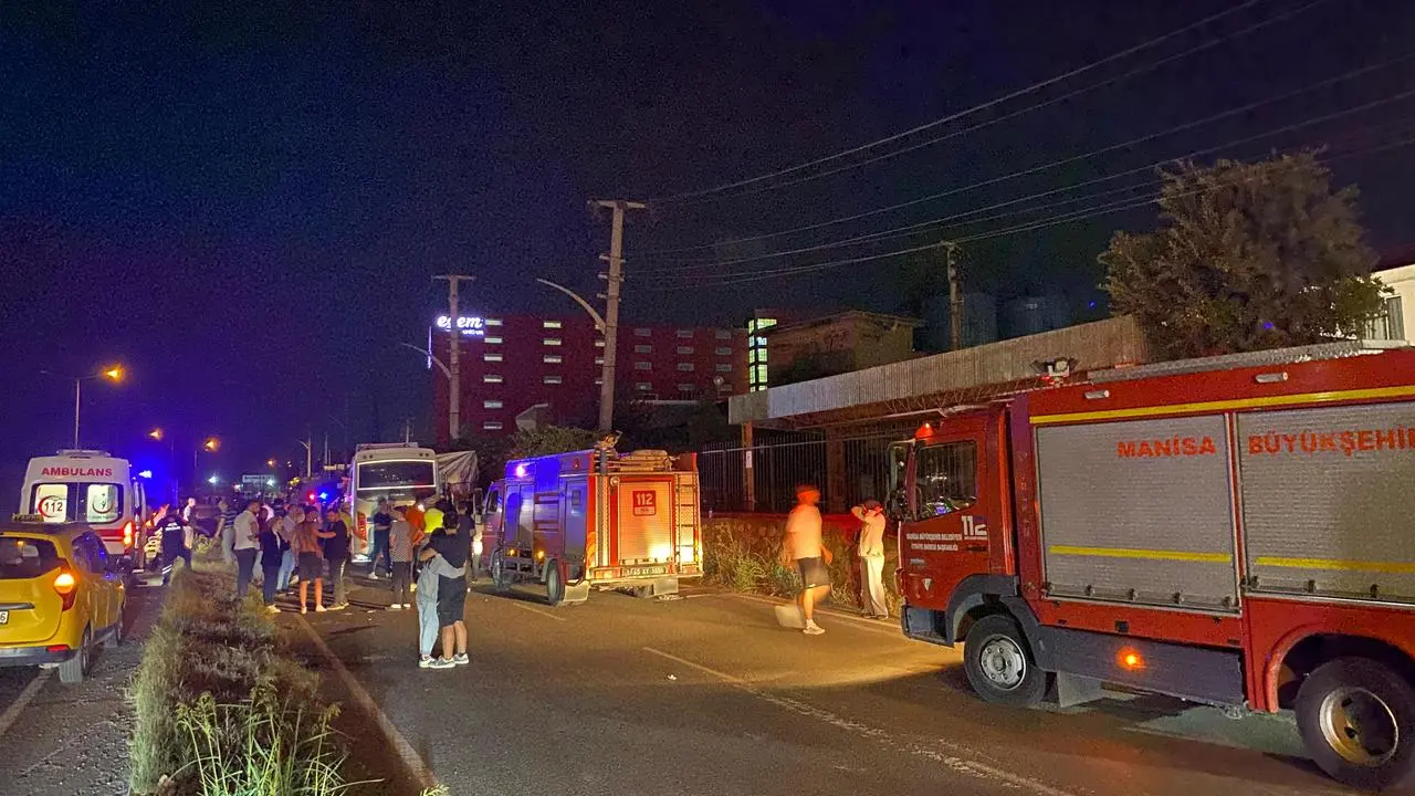 Turgutlu ilçesinde kablo fabrikası işçilerini taşıyan servis minibüsü, yol kenarında park halindeki tıra çarpması sonucu kaza meydana geldi.