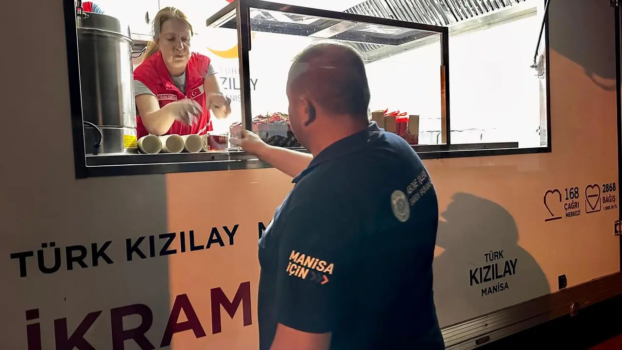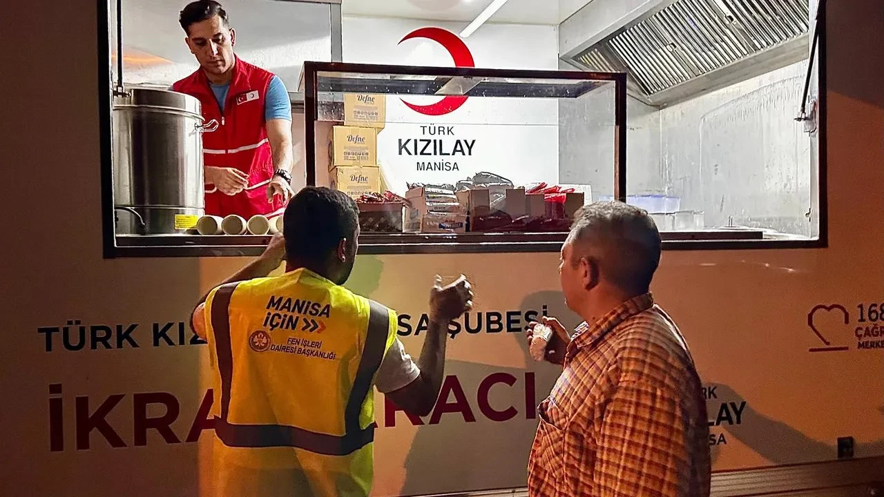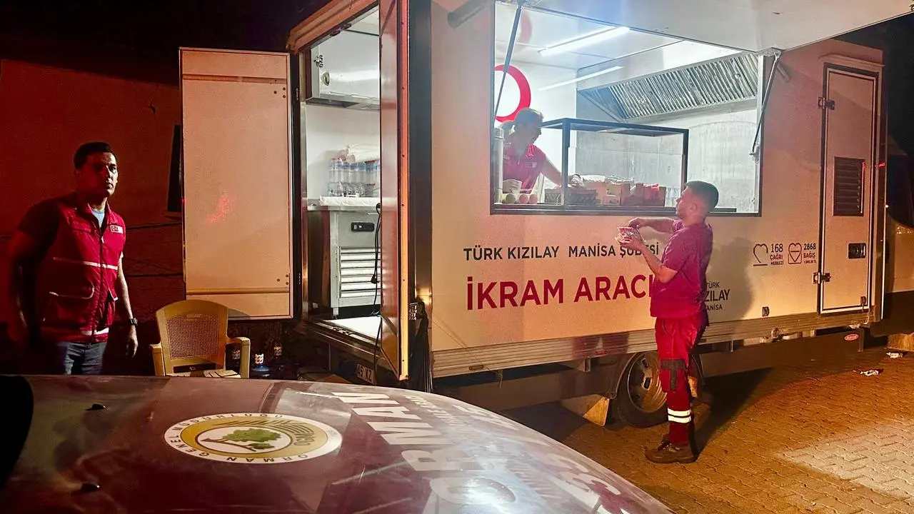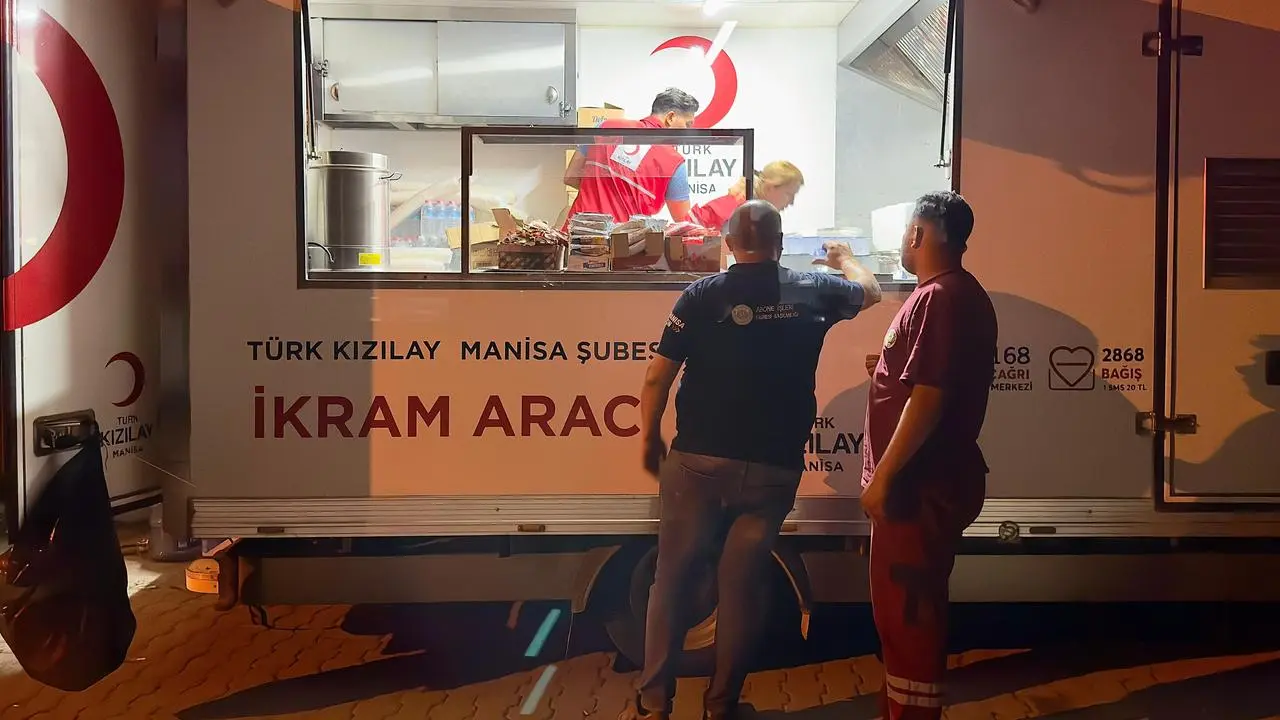 Türk Kızılay Manisa ekipleri, Sarıgöl'deki orman yangınında mücadele eden ekiplere gece boyunca yiyecek ve içecek desteği sağladı.