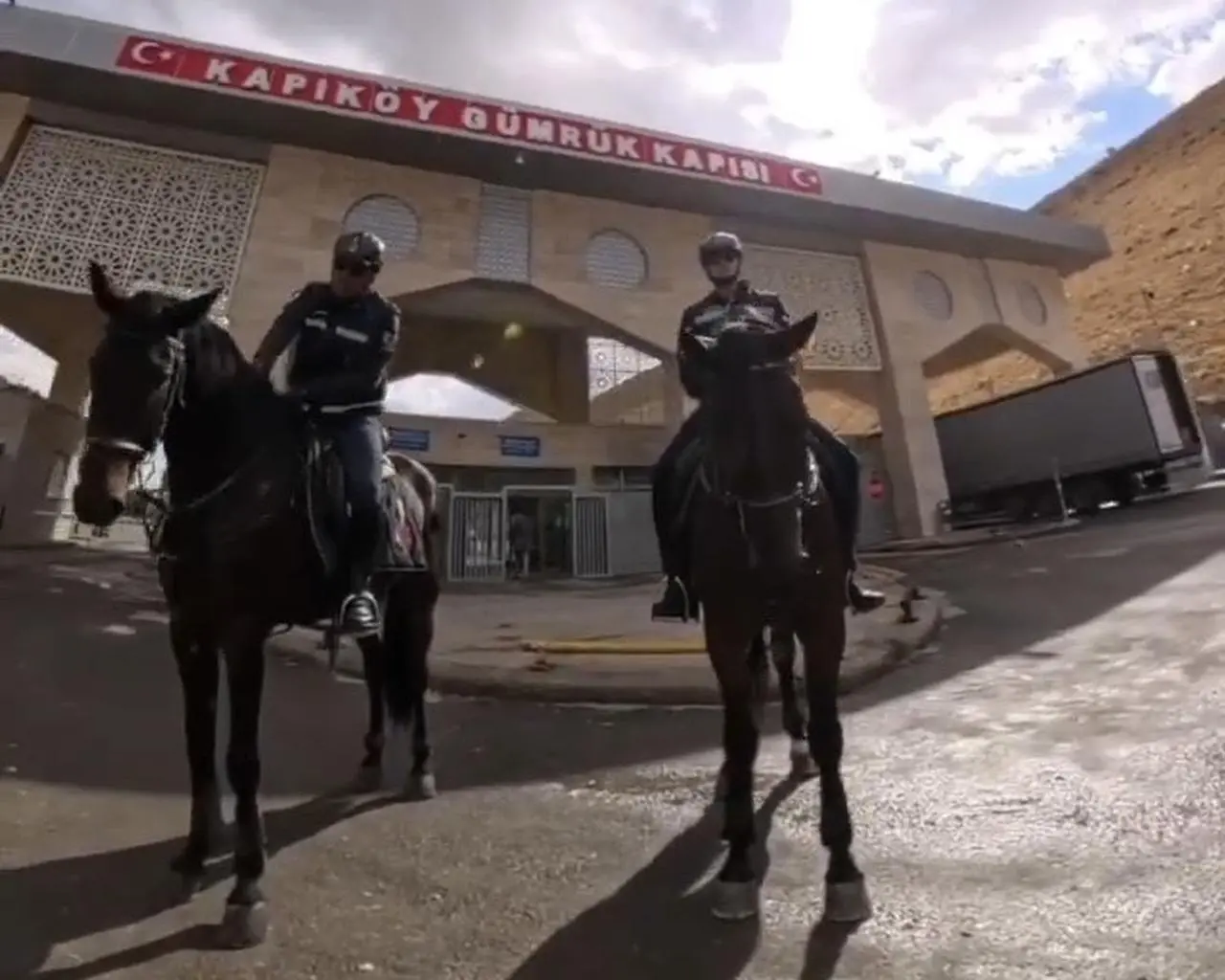 Van İl Jandarma Komutanlığına bağlı Atlı Jandarma Timi, Saray ilçesindeki Kapıköy Gümrük Kapısı çevresinde devriye görevini sürdürüyor. Sınır hattında güvenlik tedbirleri artırılırken, kaçakçılık ve düzensiz göçle mücadele ediliyor.