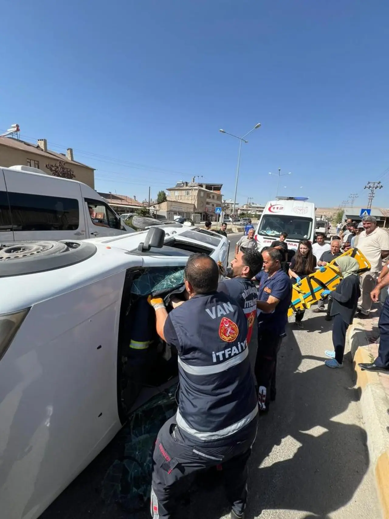 Van'ın Tuşba ilçesindeki kazada hafif ticari araç yan yatınca sürücü yaralandı.