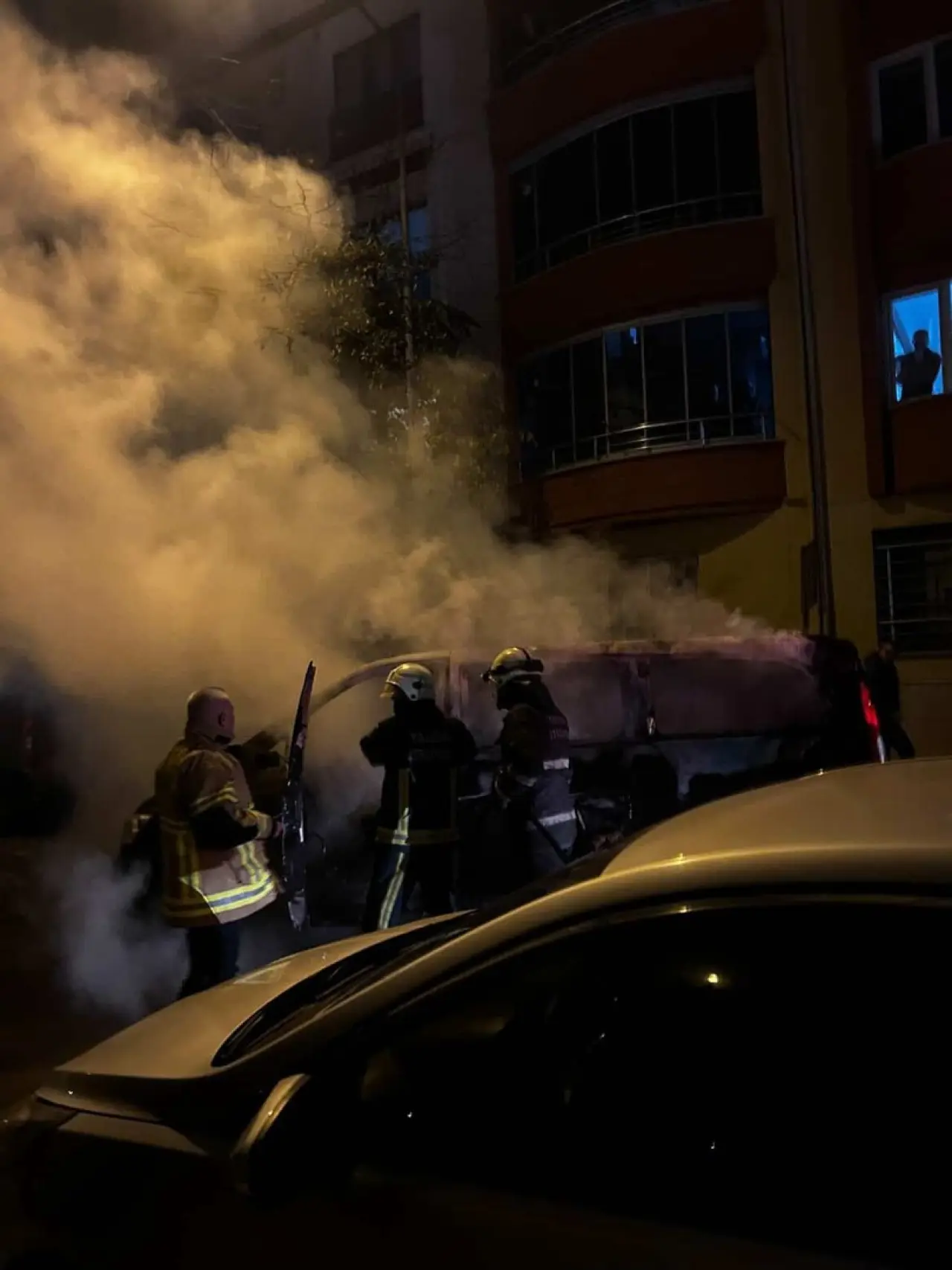 Yangında üç aracın ön ve arka kısımları zarar gördü. Olayda can kaybı yaşanmazken minibüs kullanılamaz hale geldi.