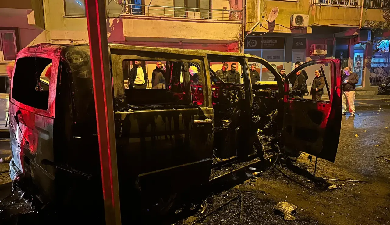 Yalova'da park sırasında minibüste çıkan yangın, çevredeki araçlara da zarar verdi.