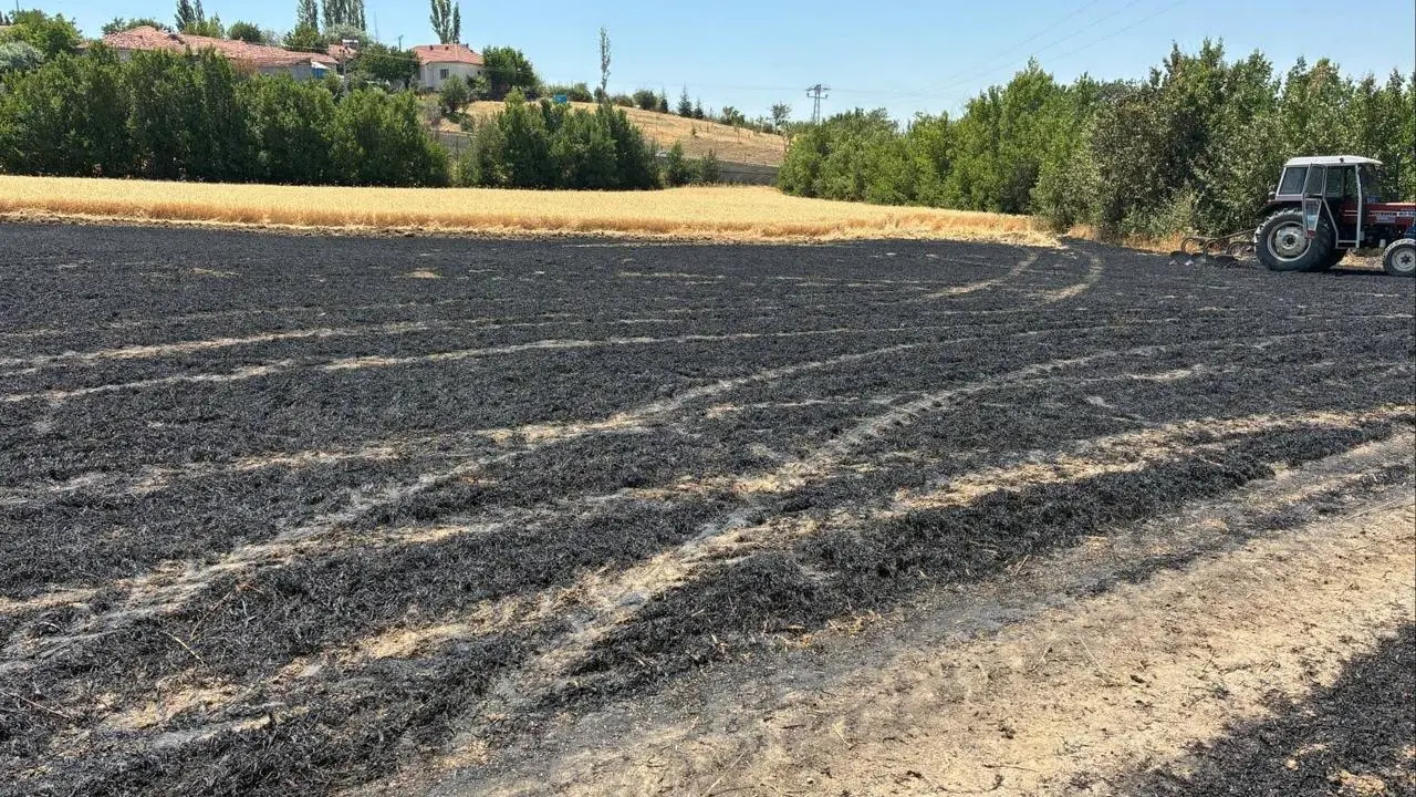 Yozgat'ta kopan elektrik kablosu ekili alan ve meyve ağaçlarının yanmasına yol açtı.