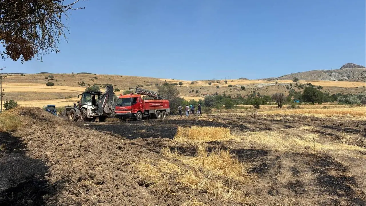 Kadışehri ilçesi Yoncalık Mahallesi'nde kopan kablo buğday tarlasına düştü. Olay anında alevler hızla yayıldı.