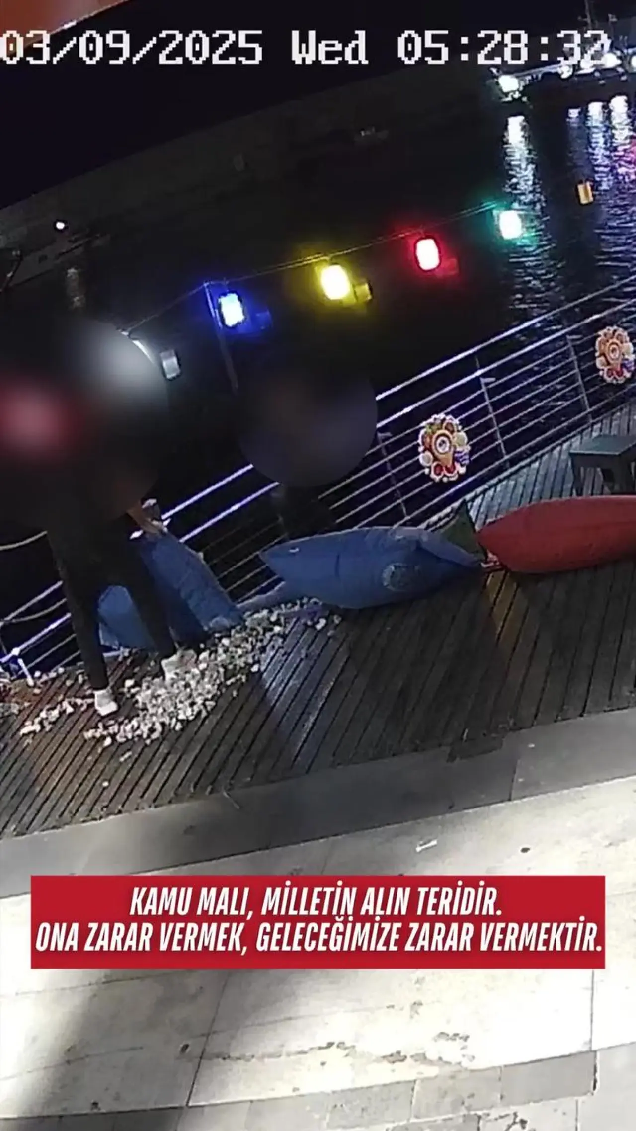 Saldırı anlarını sosyal medyada paylaşan belediye, "Kamu malı milletin alın teridir" açıklamasını yaptı. Görüntülerde dört kişinin eşyalara bilinçli şekilde zarar verdiği görülüyor.