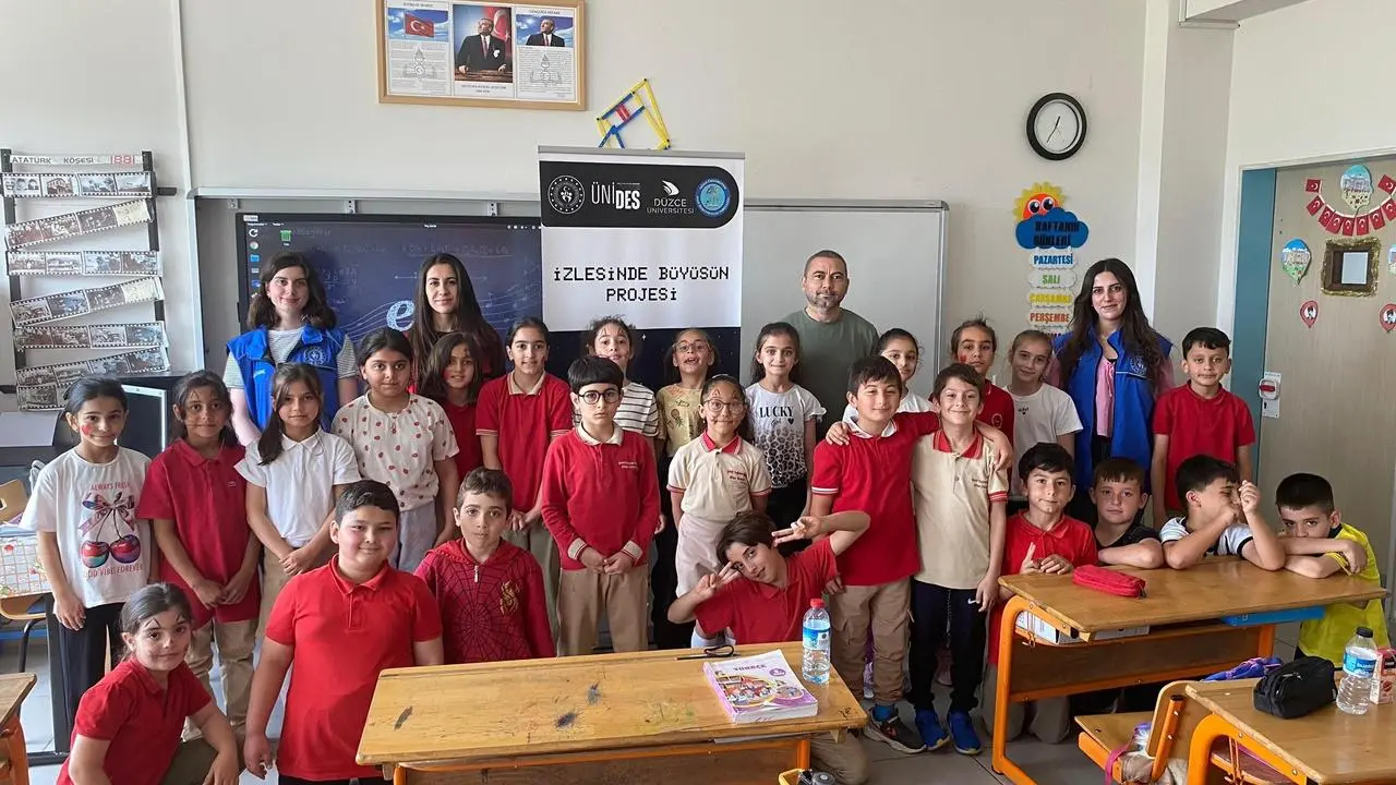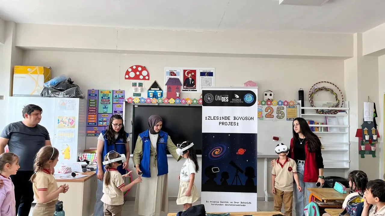 Düzce Üniversitesi öğrencilerinin hazırladığı İzlesin de Büyüsün Projesi, ilkokul öğrencilerine teknolojik deneyimler sundu.