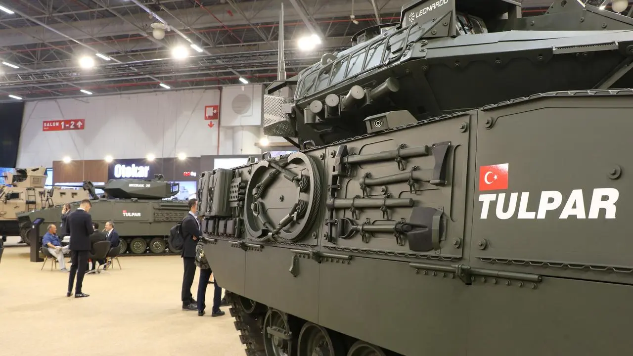 OTOKAR, fuarda COBRA II, ARMA ve TULPAR gibi 10 farklı aracını tanıttı. TULPAR, 30 mm MIZRAK ve 120 mm Leonardo kuleleriyle donatıldı.
