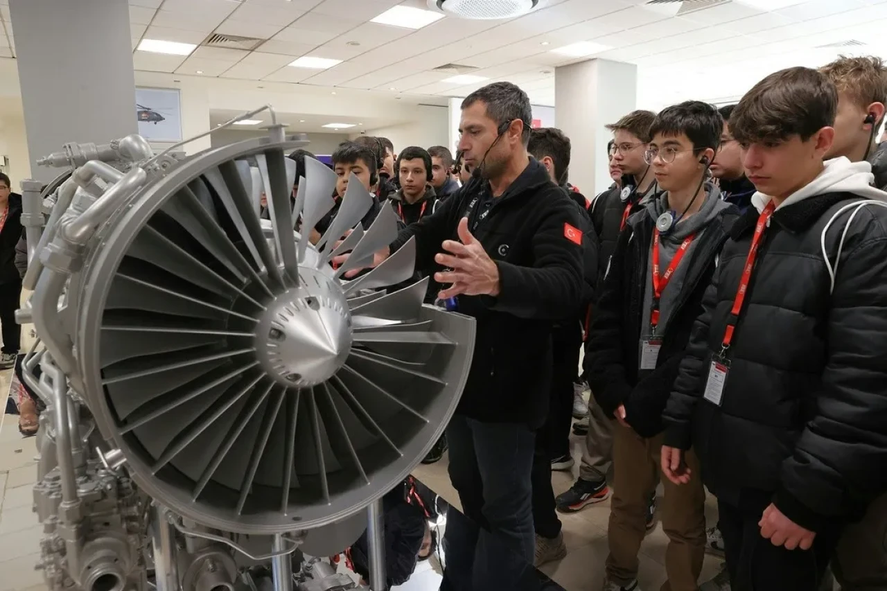 300 öğrenci, TEI'nin Eskişehir yerleşkesini ziyaret etti. Türkiye'nin millî havacılık motorları hakkında bilgi aldılar.