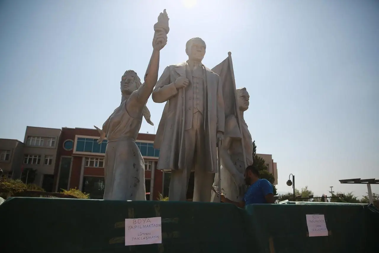15 Temmuz Şehitler Meydanı’ndaki Atatürk Heykeli’nde bakım çalışmaları titizlikle yapılıyor. Heykelde temizlik ve yenileme süreci 8 yıl sonra ilk kez tamamlanıyor.