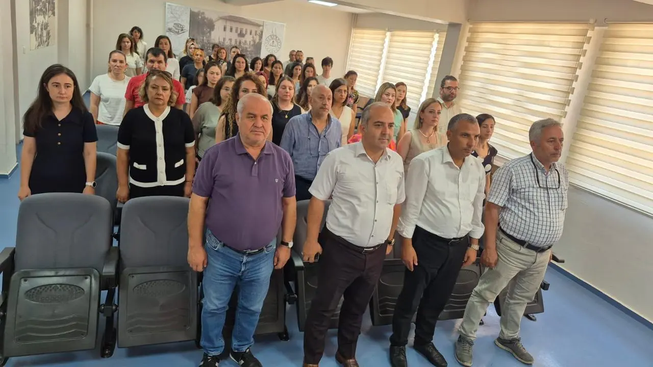 İzmir İl Milli Eğitim Müdürlüğü koordinesinde tüm ilçelerde eş zamanlı tören düzenlendi. Aliağa İlçe Milli Eğitim Müdürlüğü Konferans Salonu'nda öğretmenler bir araya geldi.
