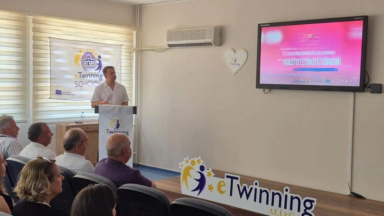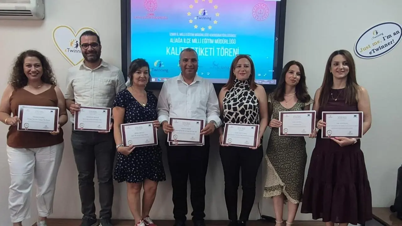 Aliağa'daki 26 okuldan 57 öğretmene yürüttükleri başarılı eTwinning projeleri için toplam 126 adet kalite etiketi verildi.