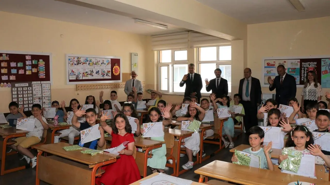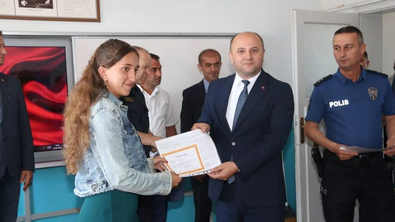 Alpaslan köyünde düzenlenen törene Kaymakam Salih Kartal ve eğitim yetkilileri katıldı. Köy okulundaki öğrenciler karnelerini yetkililerin elinden almanın mutluluğunu yaşadı.
