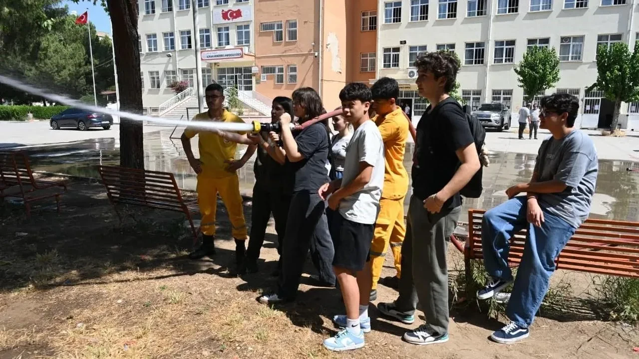 Öğrencilere yangına ilk müdahale yöntemleri uygulamalı olarak gösterildi. Doğru ekipman kullanımı ve güvenlik önlemleri detaylı şekilde anlatıldı.
