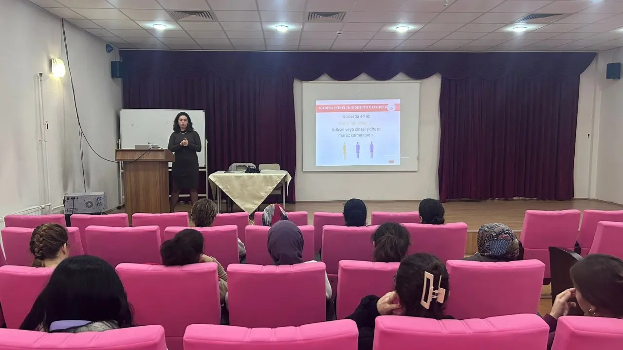 Aydın'da düzenlenen bir konferansta, öğrenciler kadına yönelik şiddet ve önleme yöntemleri hakkında bilgilendirildi.