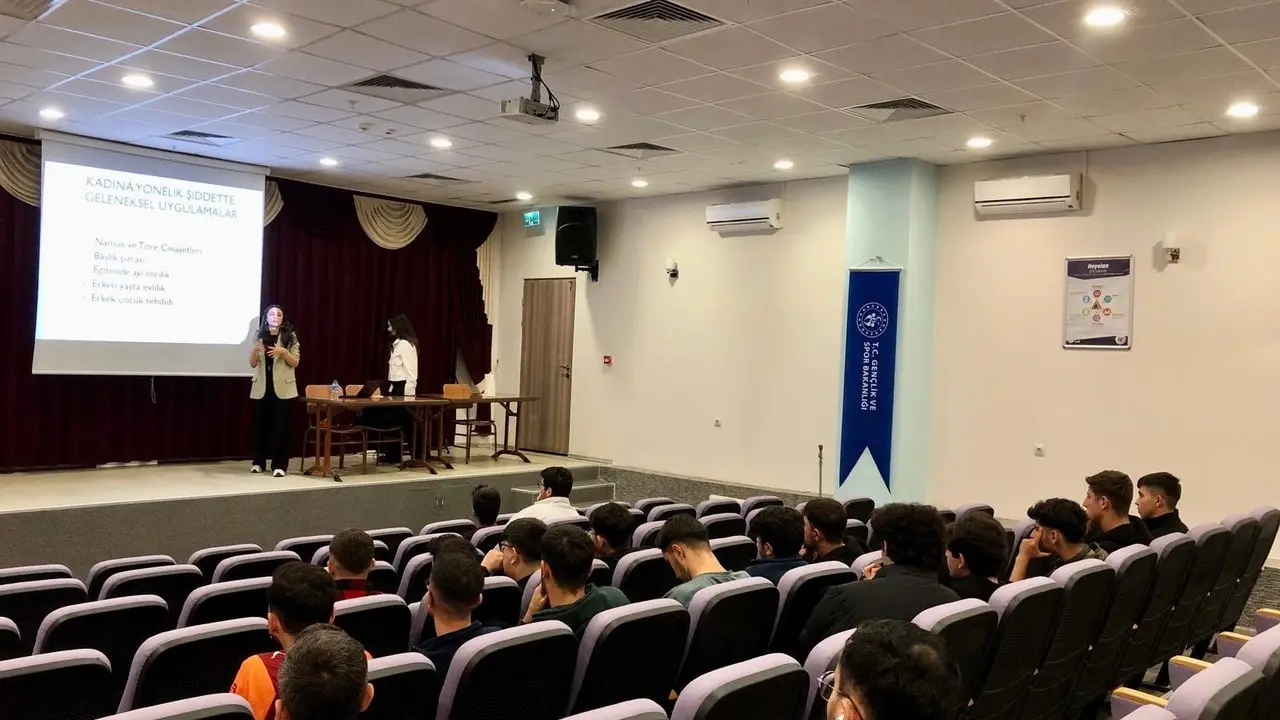 Gençlik ve Spor İl Müdürlüğü tarafından organize edilen etkinlikte şiddetin türleri ve etkileri ele alındı. Öğrenciler, interaktif sunumlarla konuyu daha yakından anlama fırsatı buldu.
