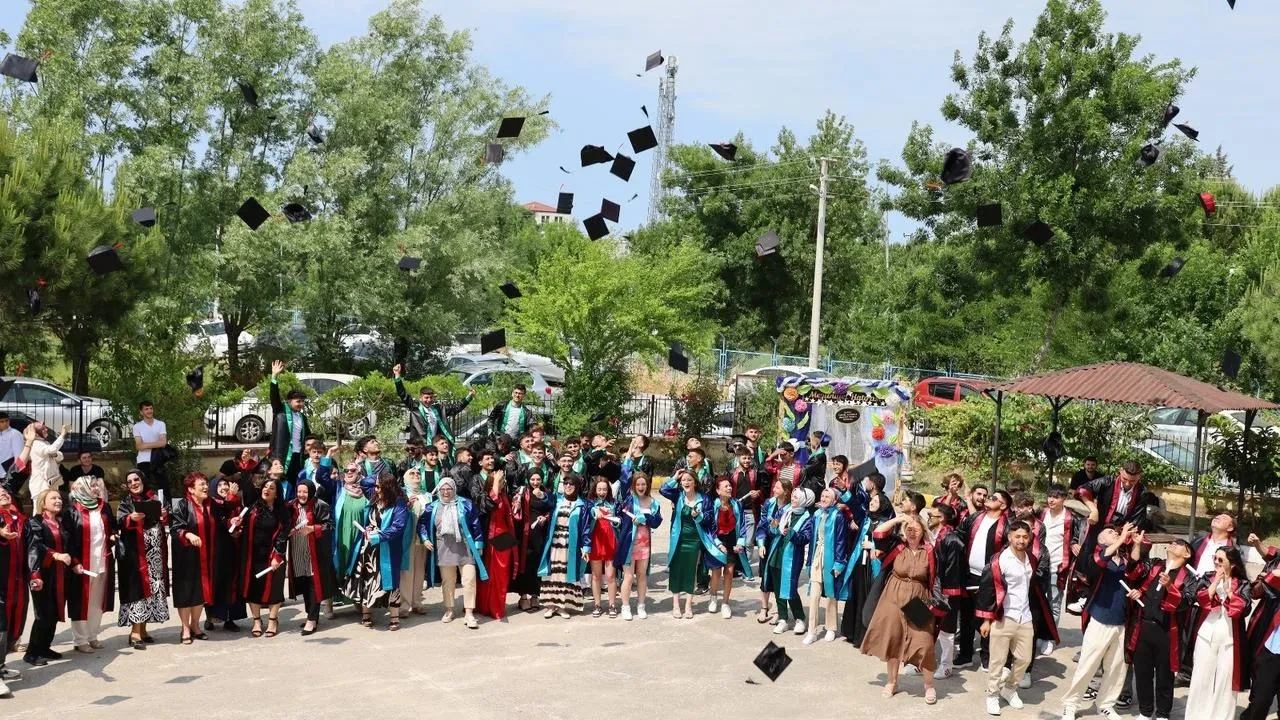 Öğrenciler geleneksel kep atma töreniyle mezuniyetlerini kutladı. Tören, müzik eşliğinde yapılan eğlencelerle son buldu.