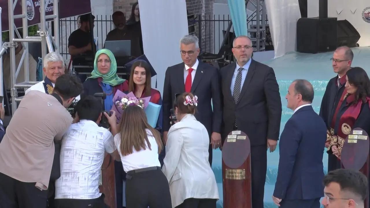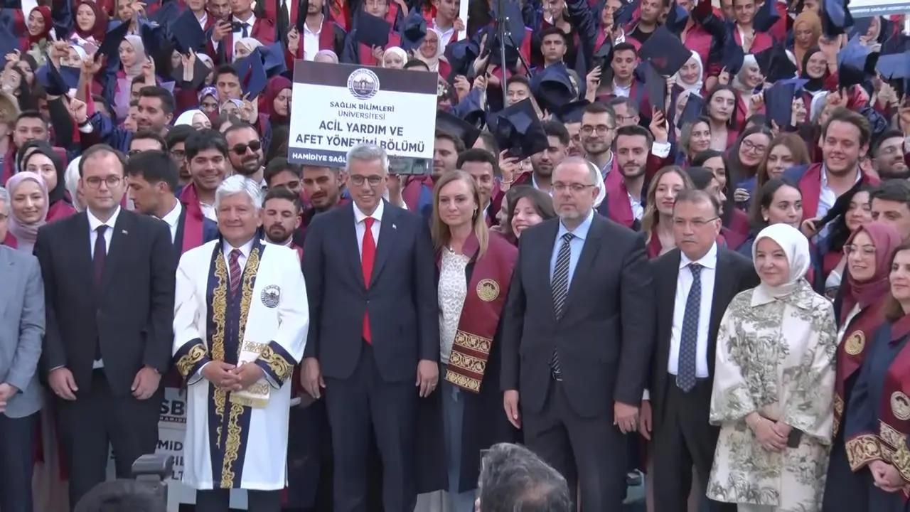 Sağlık Bilimleri Üniversitesi'nde 2024-2025 akademik yılı mezuniyet töreni düzenlendi. Törene Sağlık Bakanı Memişoğlu, üst düzey yöneticiler ve öğrenci aileleri katıldı.