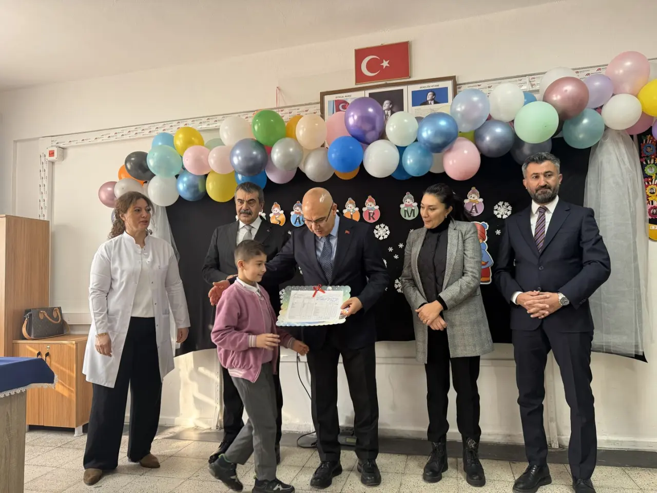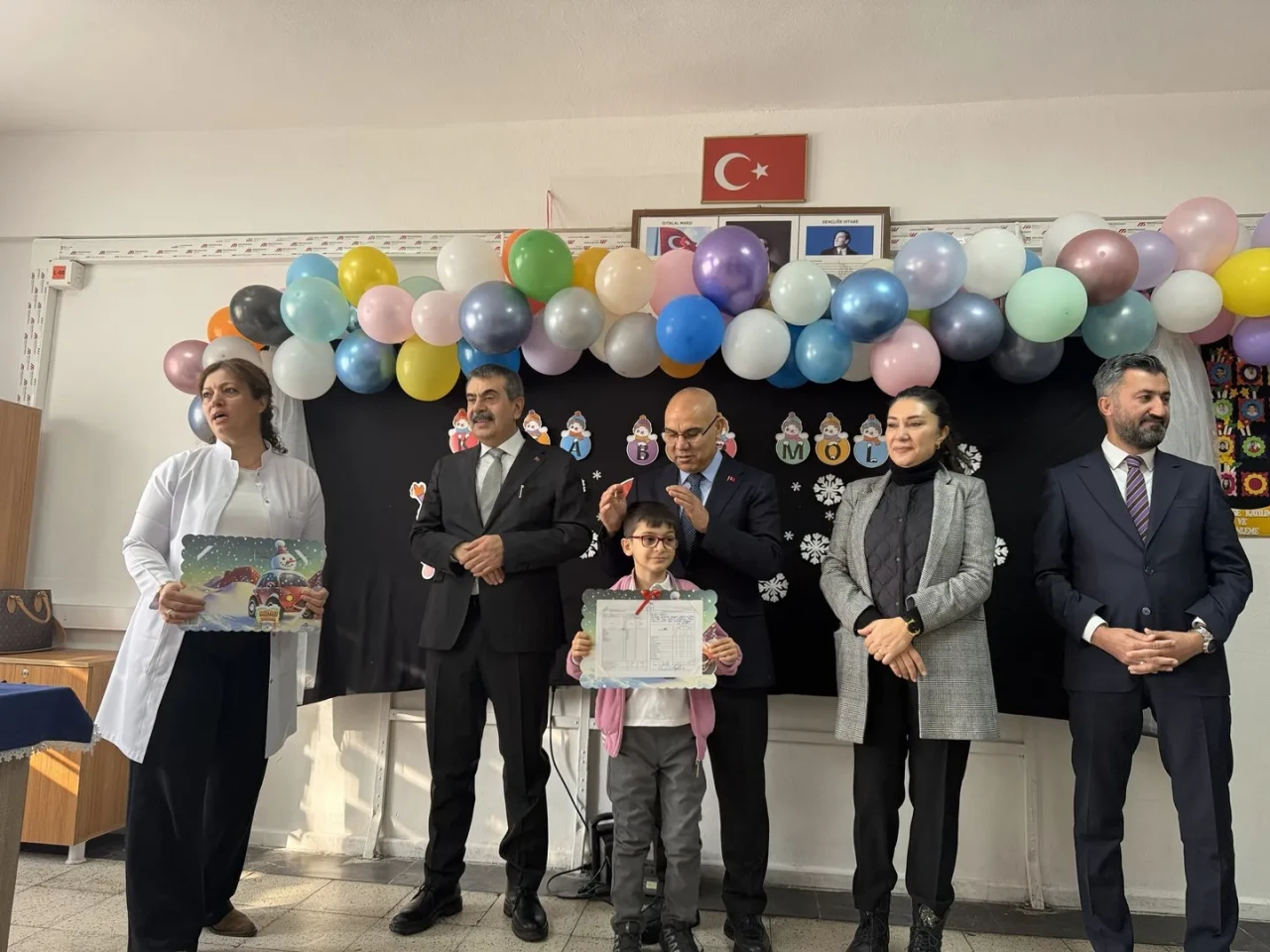 Bakan Tekin, İbrahim Çeçen İlkokulu'nda düzenlenen törende öğrencilerle bir araya geldi. Öğretmenlerle yaptığı toplantının ardından sınıfları gezerek karneleri dağıttı.