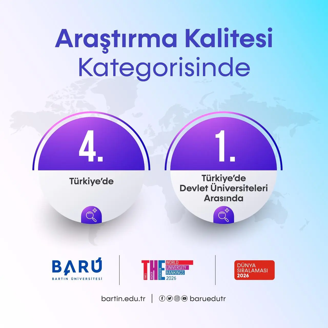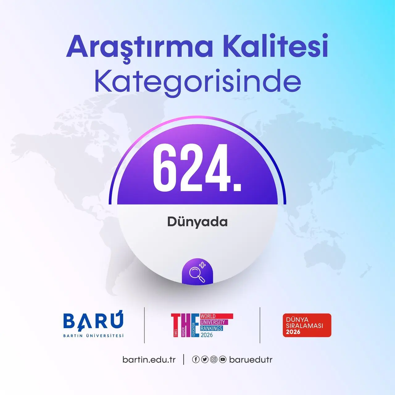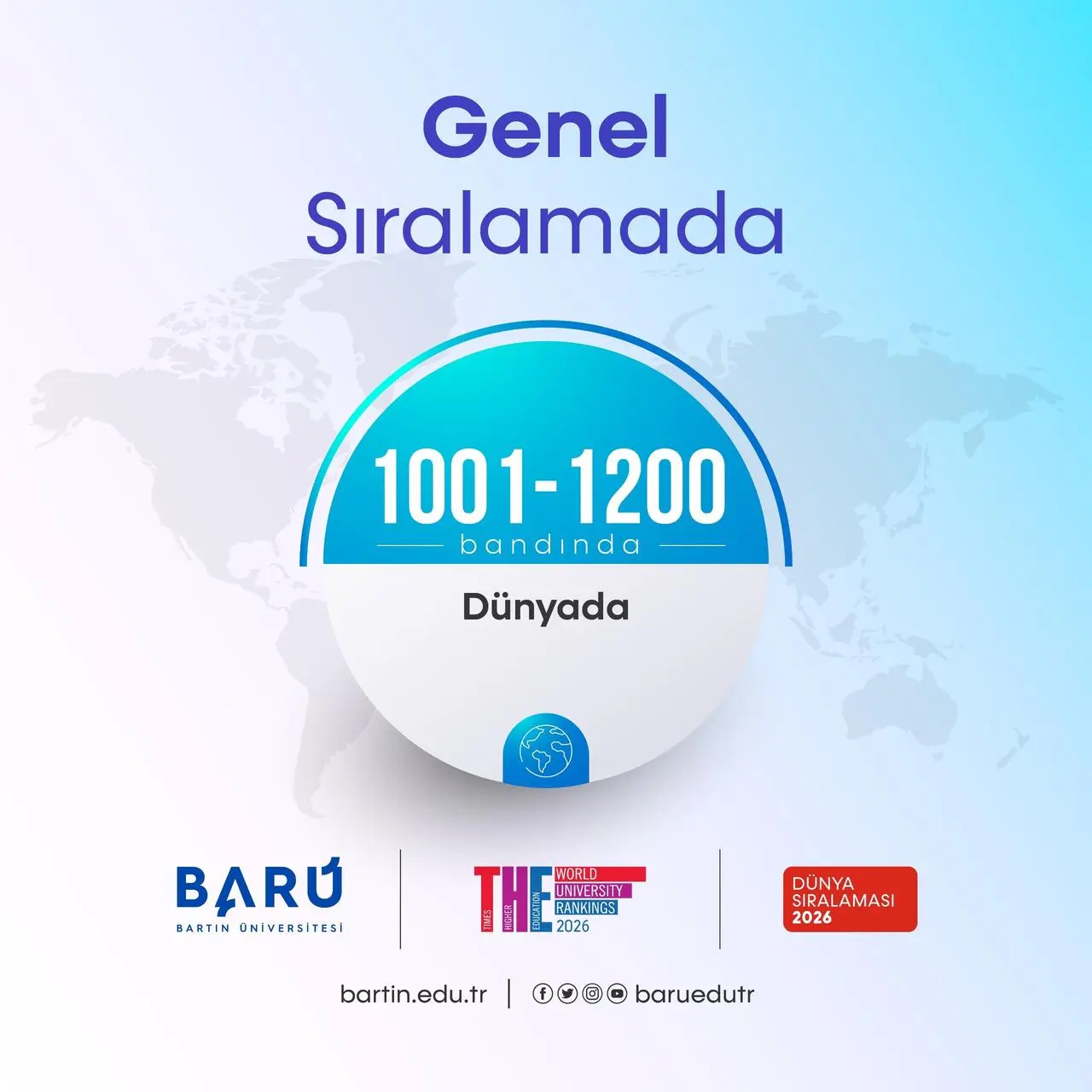 Bartın Üniversitesi, THE 2026 Dünya Üniversite Sıralaması'nda 1001-1200 bandında yer alarak Türkiye'de 16. oldu.
