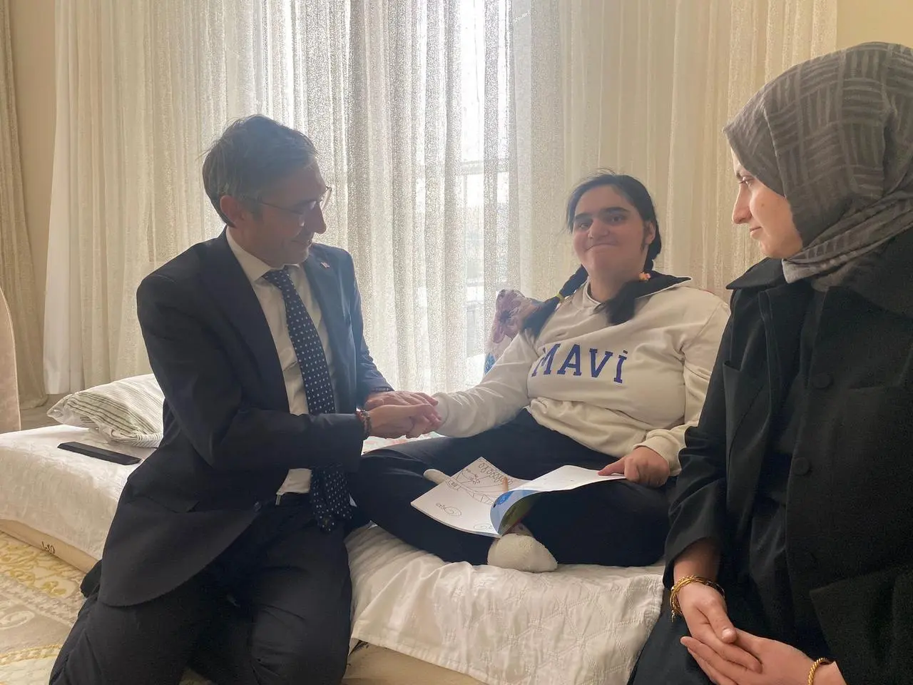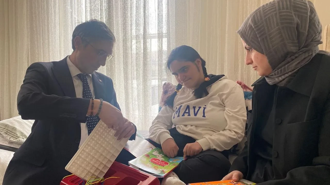 Bayburt İl Millî Eğitim Müdürü Ömer Faruk Kahraman, evde eğitim alan öğrenci Nesibe Karahan'ı ziyaret ederek moral verdi.