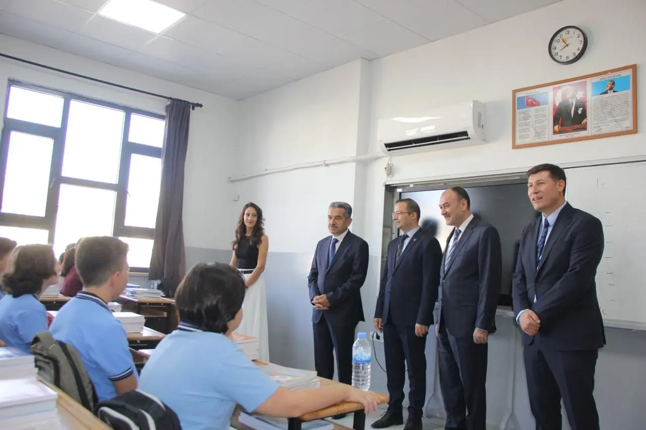Okulda öğrencilerle bir araya gelen Vali Ekici, sınıfları gezdi. Başarılar dileyerek öğretmenlerle kısa bir toplantı yaptı.