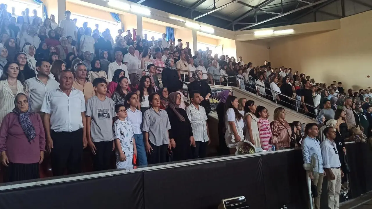 Mezun olan öğrenciler törende keplerini havaya fırlattı. Veliler ve öğrenciler bu mutlu günü hep birlikte kutladı.