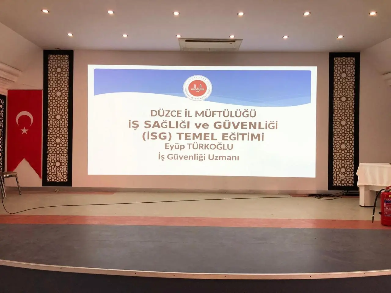 Düzce İl Müftülüğü personellerine yönelik iş sağlığı ve güvenliği eğitimi düzenlendi. Toplantı salonunda gerçekleşen eğitimde çalışanların güvenliği konusunda detaylı bilgiler aktarıldı.