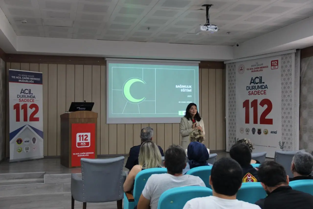 Düzce'de 112 Acil Çağrı Merkezi personeline etkili iletişim teknikleri anlatıldı.