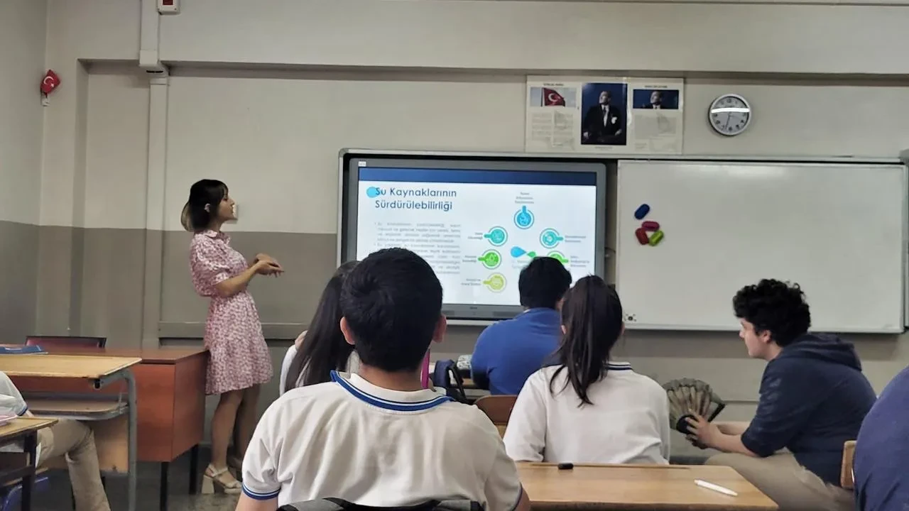 Öğrenciler su kaynaklarının verimli kullanımı konusunda bilgilendiriliyor. Su tasarrufu için pratik yöntemler ve uygulamalar paylaşılıyor.