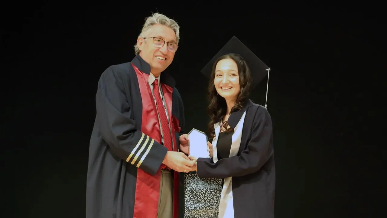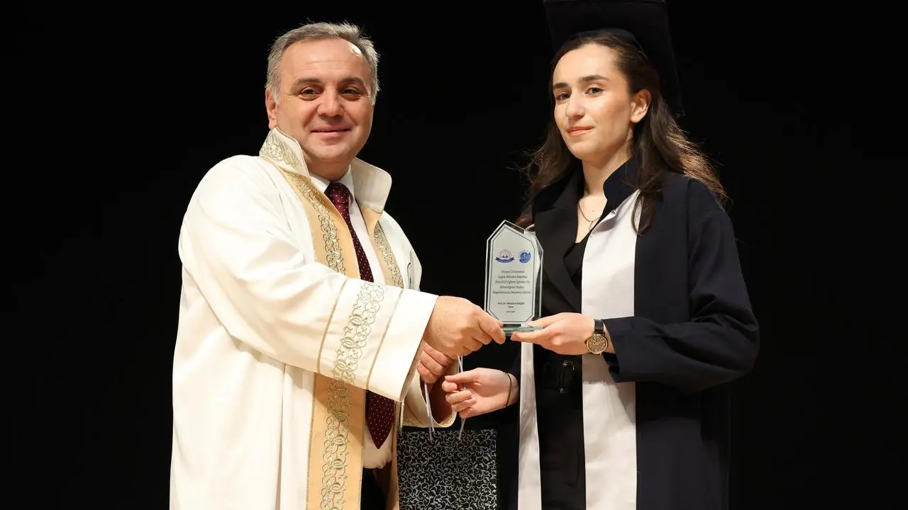 Dönem birincisi Servet Alemdar mezuniyet kütüğüne plaket çaktı. Mezunlar yemin ederek diplomalarını aldı ve tören sona erdi.