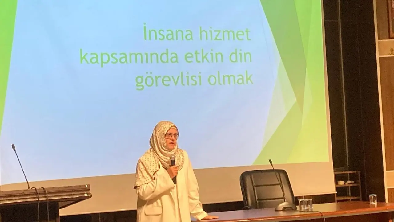 Konuşmacı Uzm. Dr. Semin Güler Oğurtan, din görevlilerinin aile yapısındaki kritik rolünü örneklerle anlattı. Toplum rehberliğinde kişisel gelişimin önemine dikkat çekti.