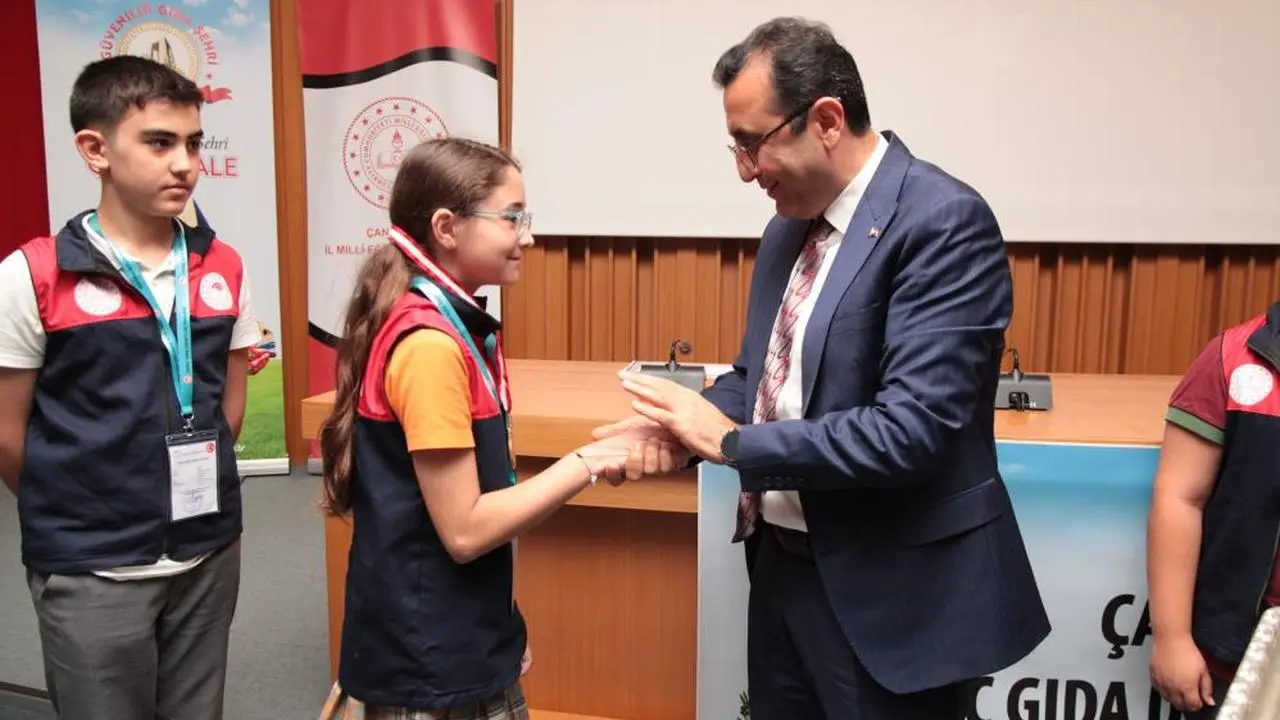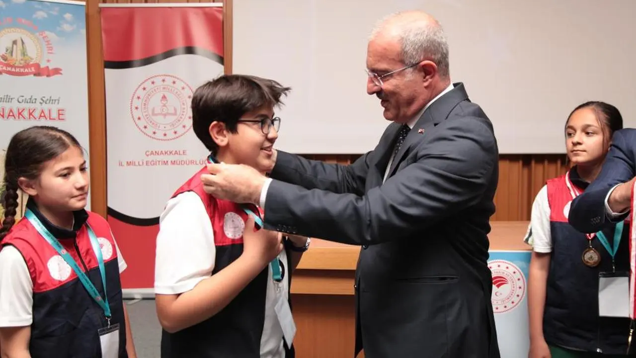 Çanakkale'de gıda güvenliği bilincini artırmak amacıyla İl Tarım ve Orman Müdürlüğü ile İl Milli Eğitim Müdürlüğü iş birliğinde yürütülen "Genç Gıda Denetçileri Projesi" düzenlenen törenle tamamlandı. Vali Doç. Dr. Ömer Toraman'ın katılımıyla gerçekleşen törende, proje kapsamında eğitim alan 88 öğrenciye başarı madalyaları verildi.
