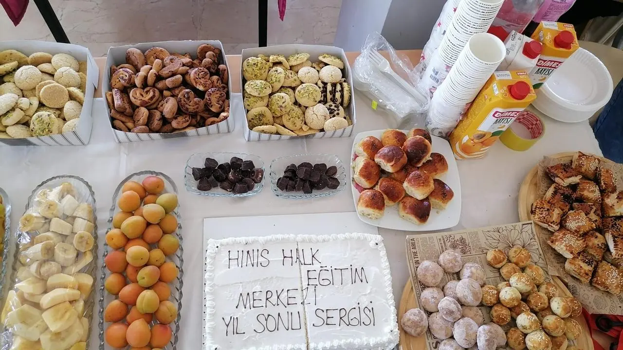 Erzurum'un Hınıs ilçesinde Halk Eğitimi Merkezi Müdürlüğü tarafından yıl sonu sergisi görkemli bir törenle açıldı.