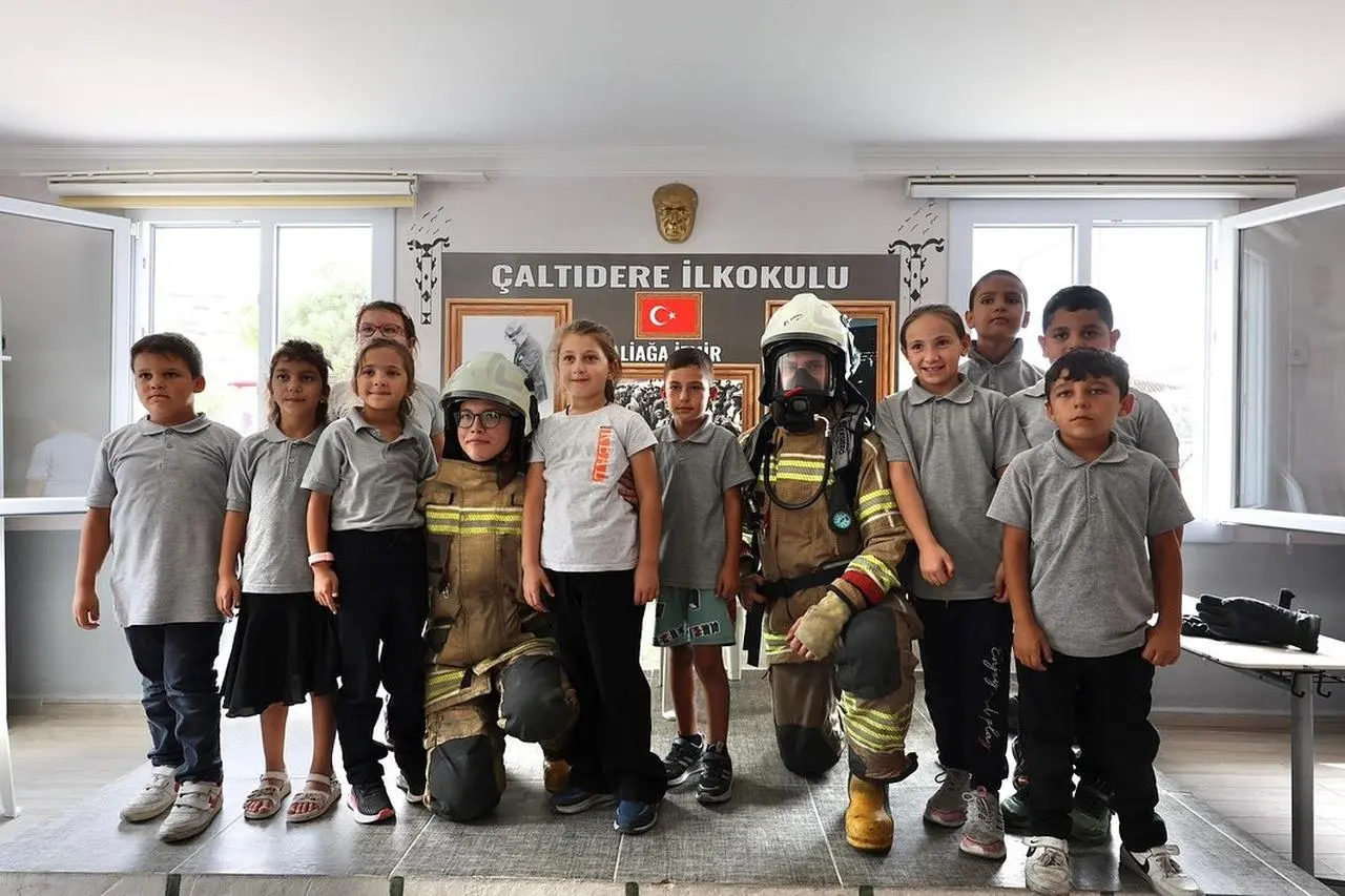 Aliağa Çaltıdere İlkokulu öğrencileri, itfaiye araç ve ekipmanlarını yakından tanıma fırsatı buldu.