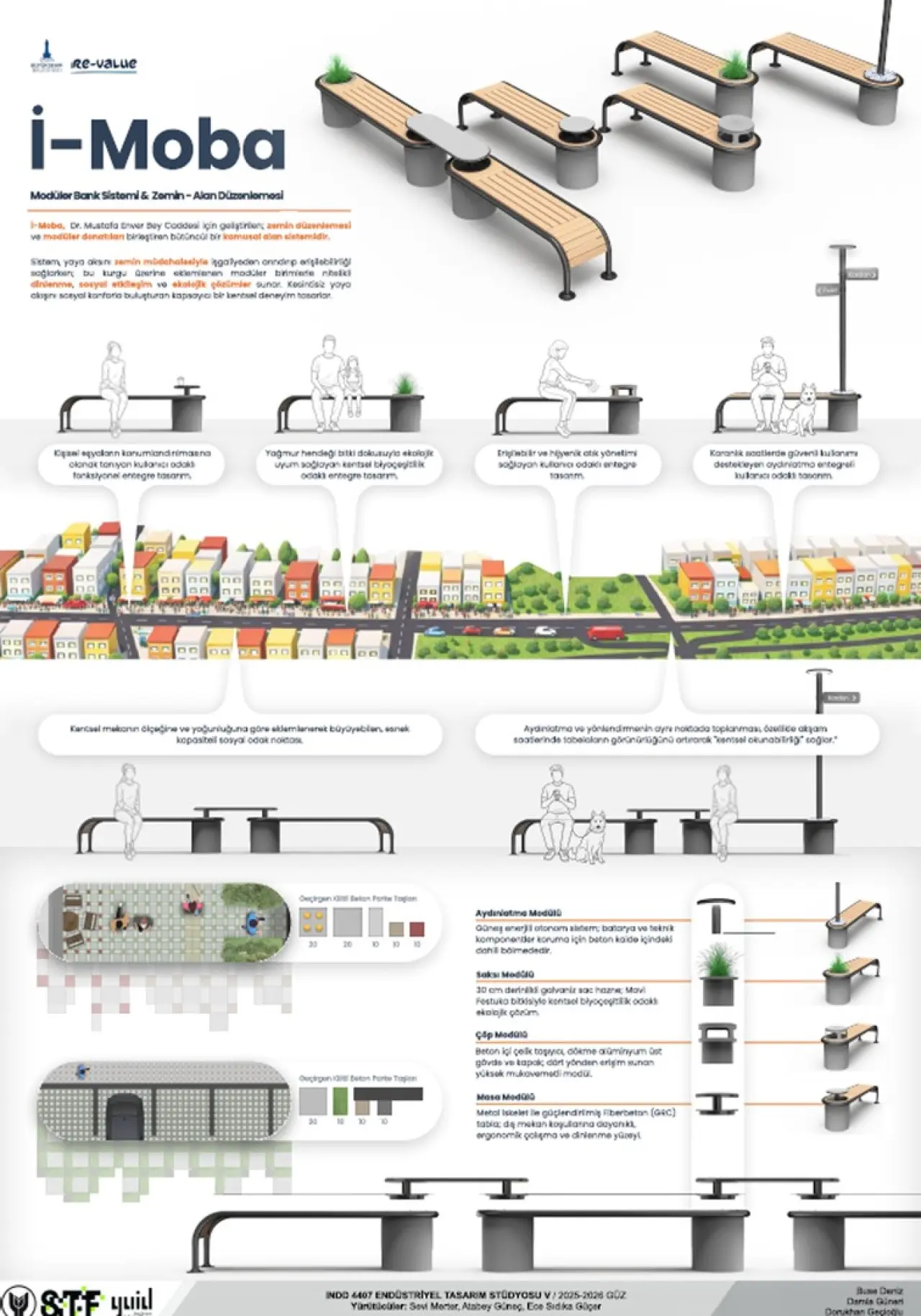 Öğrenciler, oturma elemanlarından aydınlatmaya kadar çeşitli kentsel donatılar üzerinde çalıştı.