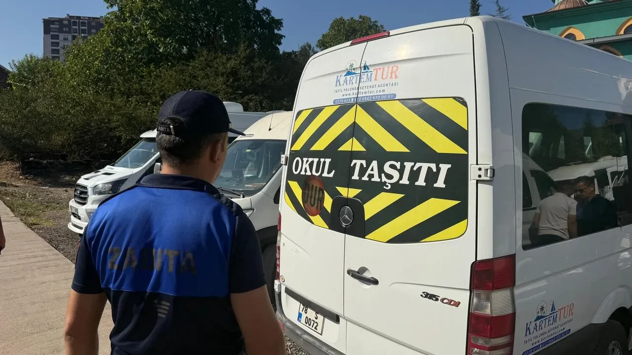 Karabük Belediyesi, öğrencilerin güvenli ulaşımı için okul servislerini denetliyor.