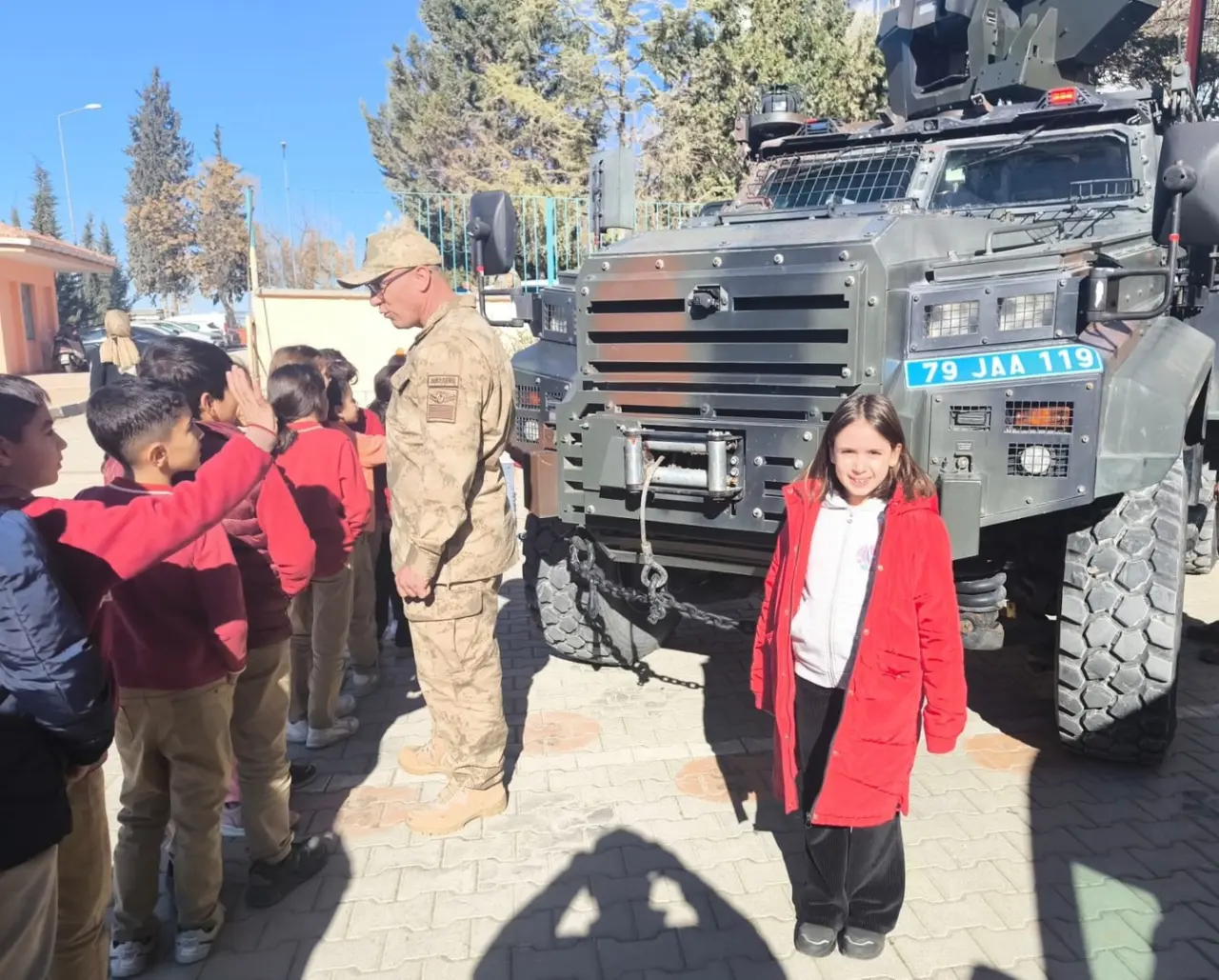 Kilis'te jandarma ekipleri, öğrencilere yerli savunma sanayi araçlarını tanıttı ve yerli üretimin değerini vurguladı. Etkinlikte öğrenciler, savunma sanayiinde kullanılan teknolojik ürünleri yakından görme fırsatı buldu.