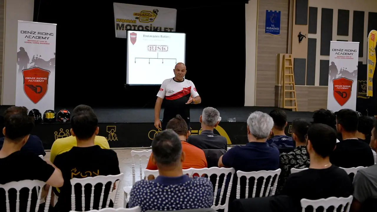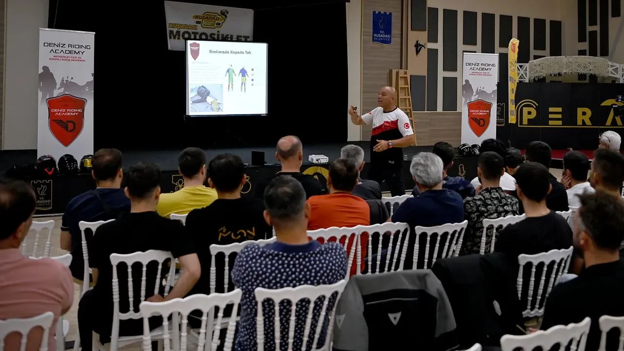 Kuşadası Belediyesi ve motor kulübü iş birliğiyle iki oturumluk eğitim programı gerçekleştirildi. Eğitmen Aybars Yüce, güvenli sürüş teknikleri konusunda detaylı bilgiler paylaştı.