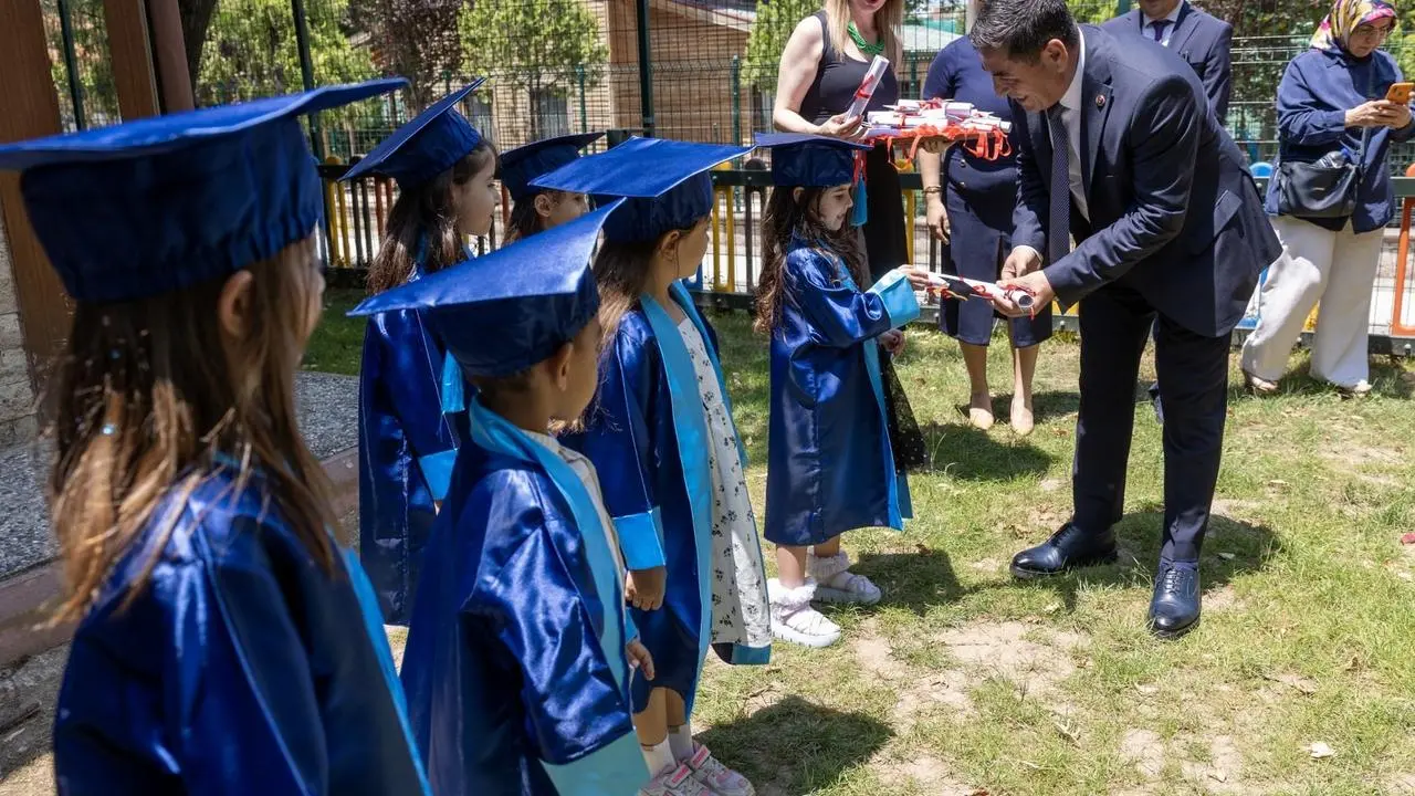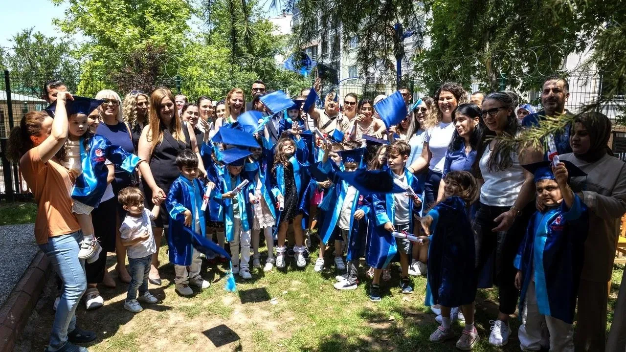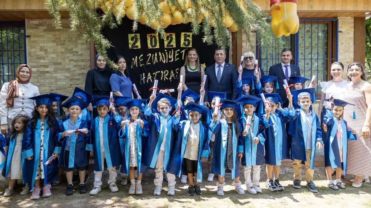 Özel Manisa Yunusemre Anaokulu'nda mezuniyet töreni coşkuyla gerçekleşti, minik öğrenciler ilk diplomalarına kavuştu.
