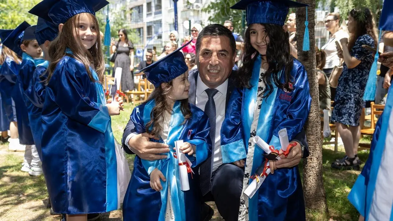 Öğrenciler diplomalarını alarak geleneksel kep atma törenini gerçekleştirdi. Aileler çocuklarıyla birlikte hatıra fotoğrafı çektirdi.