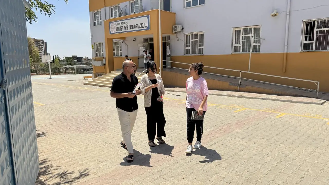 Kızıltepe ilçesinde yaşayan Ahmet Cengiz, kızı Semanur ile Mehmet Akif İnan Ortaokulu'nda sınava katıldı. Baba-kız aynı katta farklı salonlarda heyecanı paylaştı.