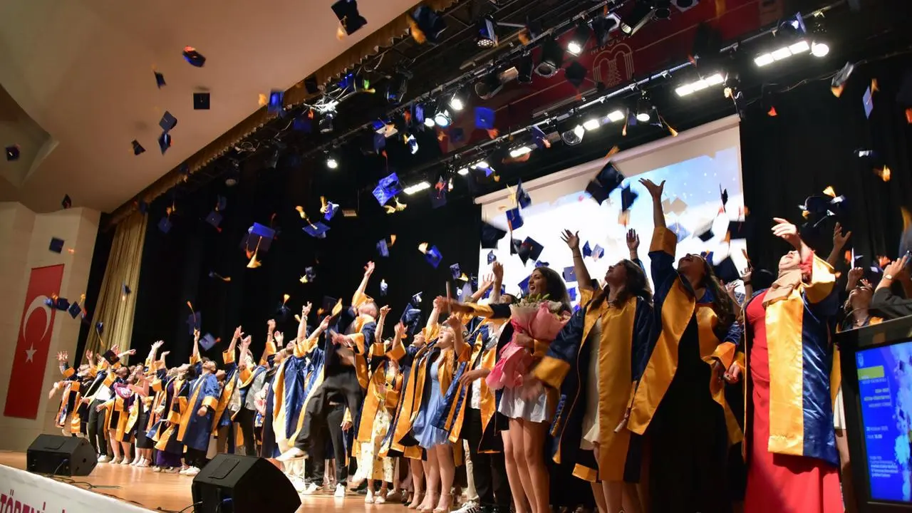 Öğrenciler bölümler halinde diplomalarını aldı. Tören sonunda mezunlar geleneksel kep atma töreniyle mezuniyetlerini kutladı.