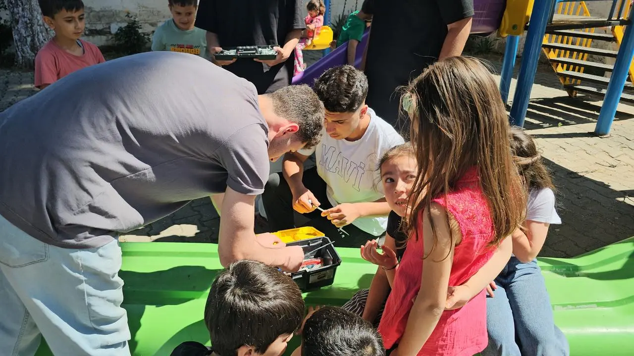 Meslek lisesi öğrencileri, bakım çalışmalarının ardından minik öğrencilerle oyunlar oynadı. Küçük öğrenciler, kendilerine gösterilen ilgiden duydukları memnuniyeti dile getirdi.